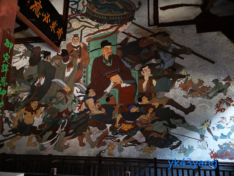殿内供奉城隍,西面墙壁上有壁画,内容是城隍出巡,不过都是近代绘制的。