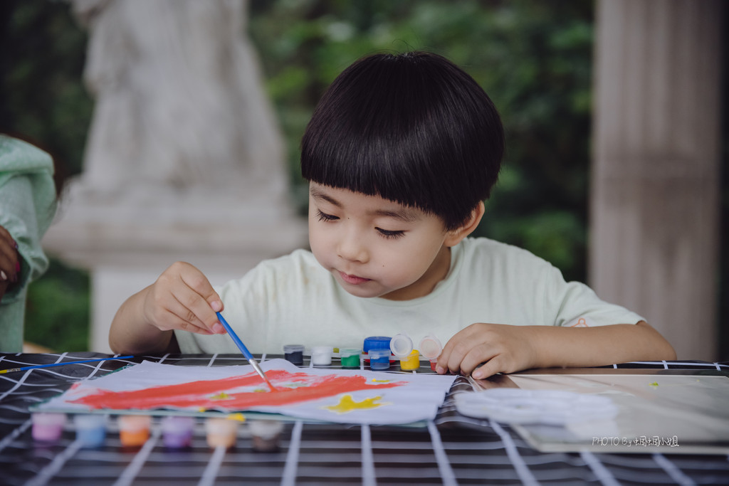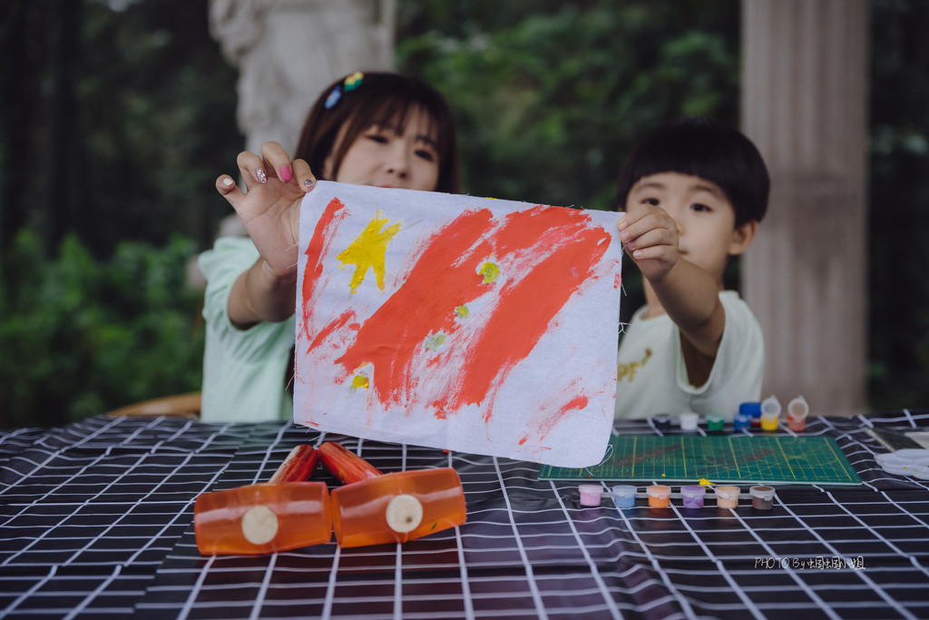 看得出叮当小朋友的作品是什么吗?对,就是他最爱的五星红旗!这个童真的爱国心呐,真的是值得我去好好的守护!