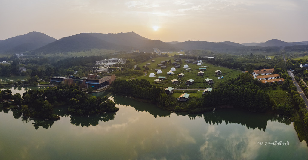 宝盛园里绝美一景--茶田里的山居帐篷,航拍视角下真的是美到爆哇~