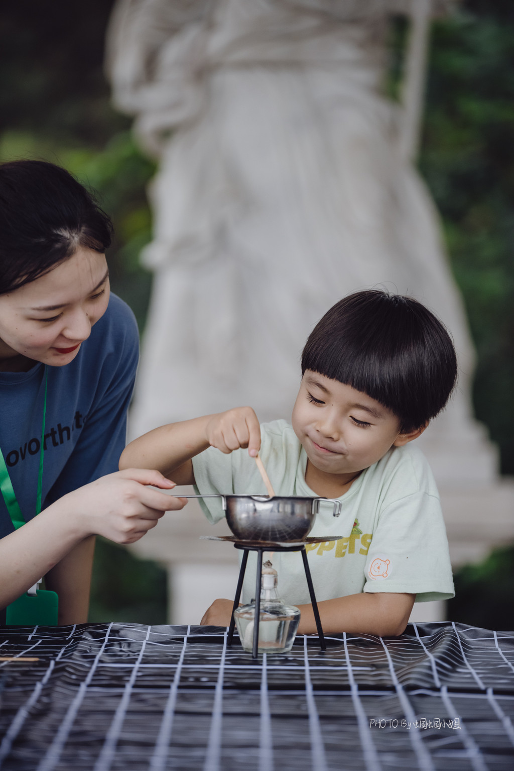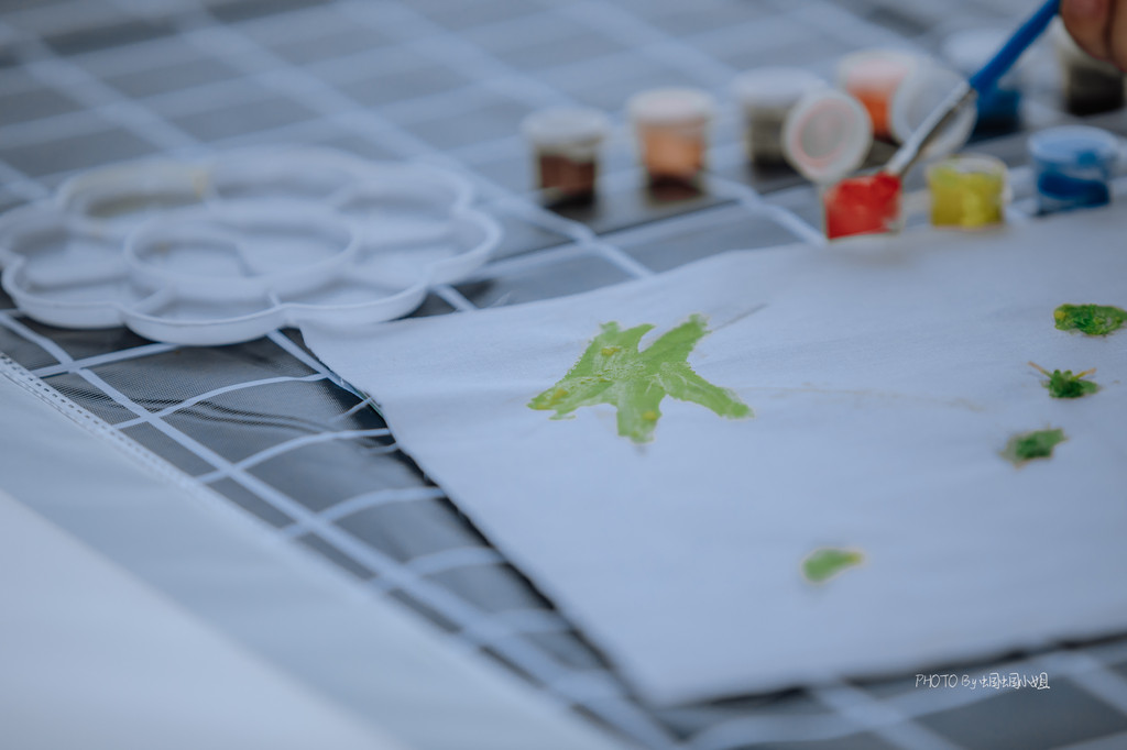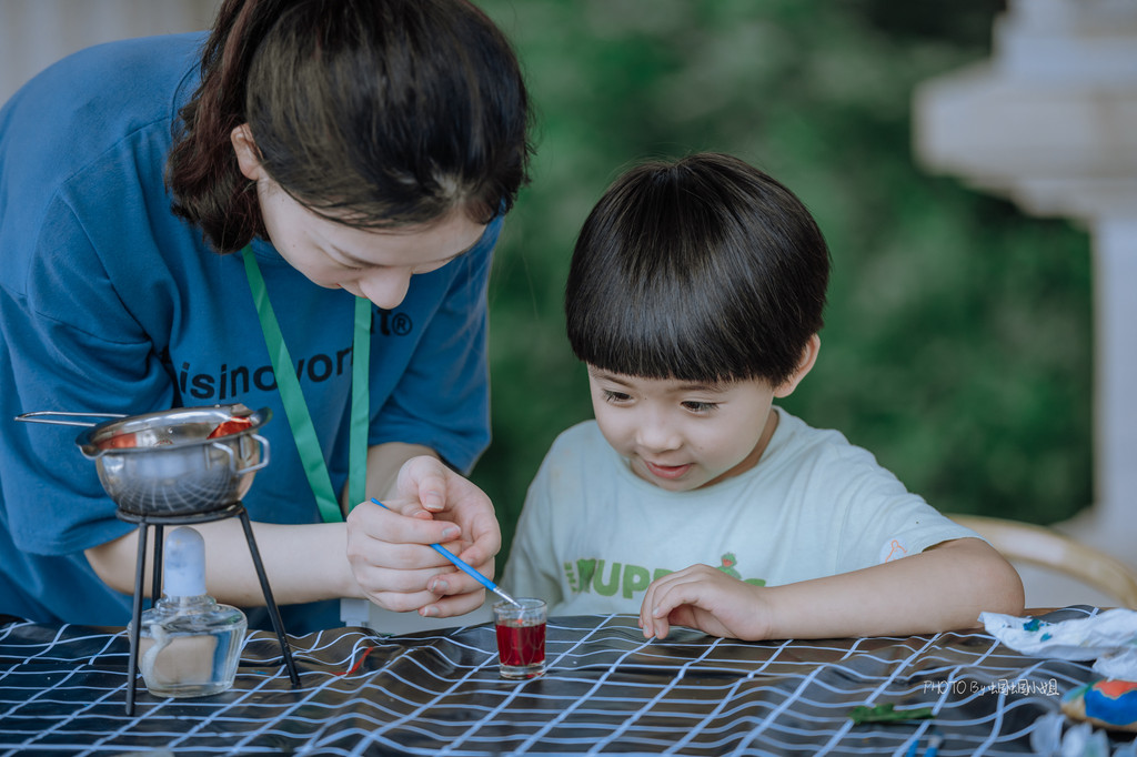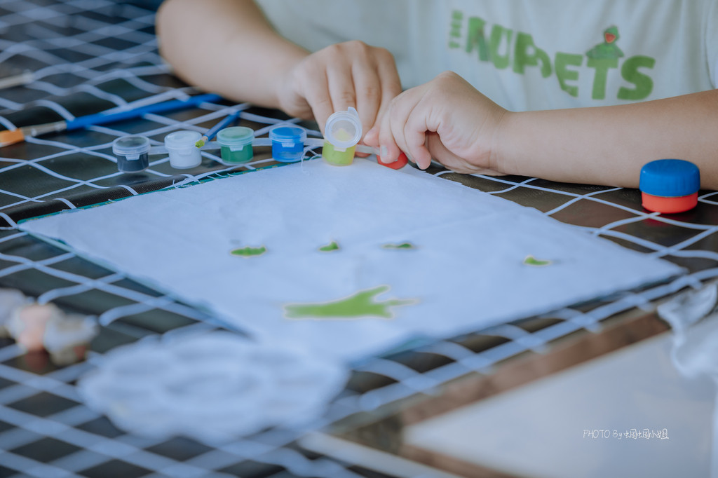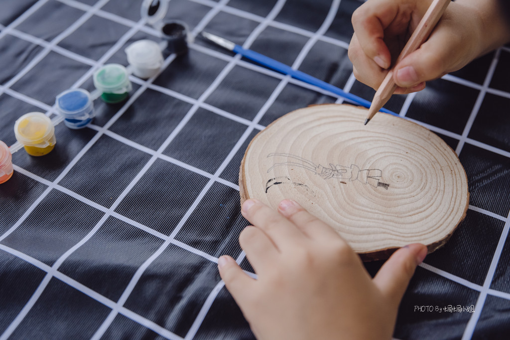 年轮画、石头画,分别在拥有着一圈圈年轮的树干横切面上和石头上画画,小朋友可以天马行空的描绘,一旁还有耐心的G.O.辅导着他们,帮助他们完成一幅完美的作品。