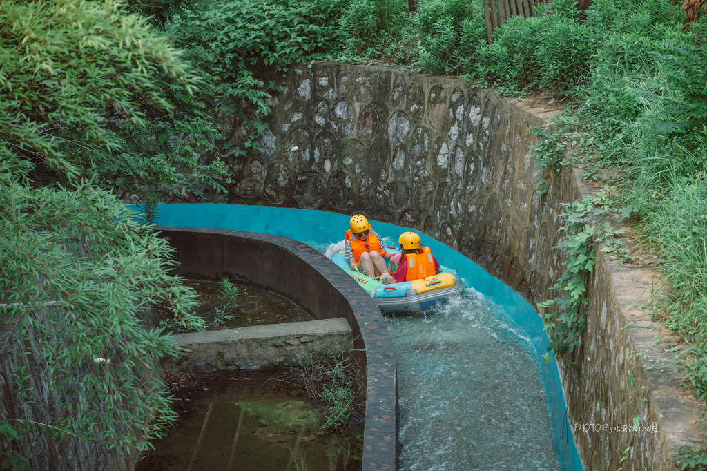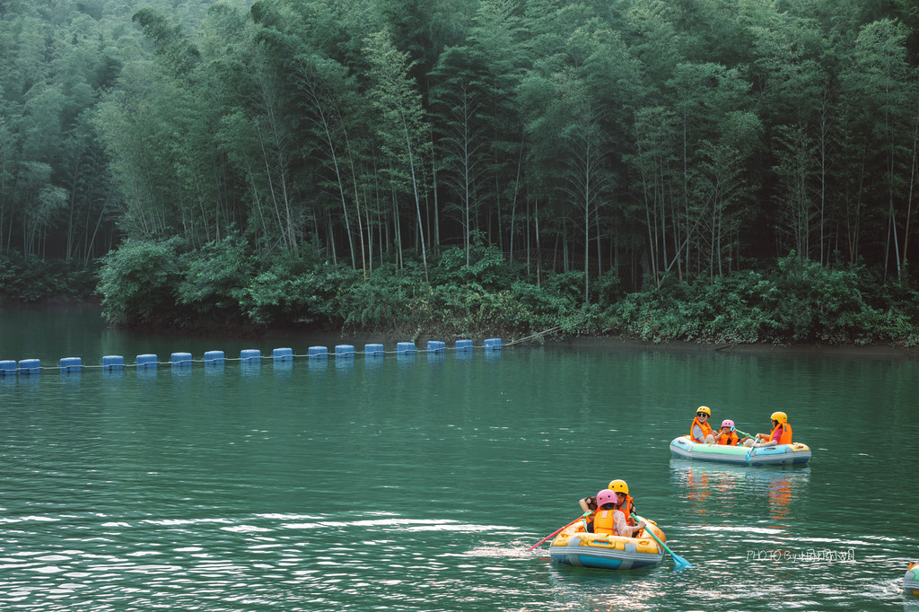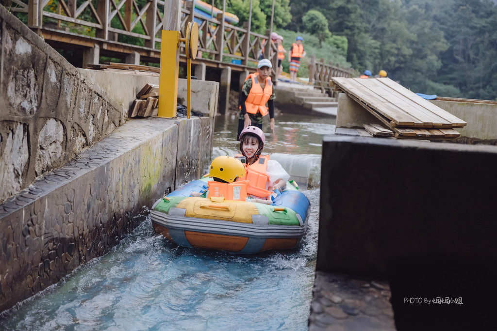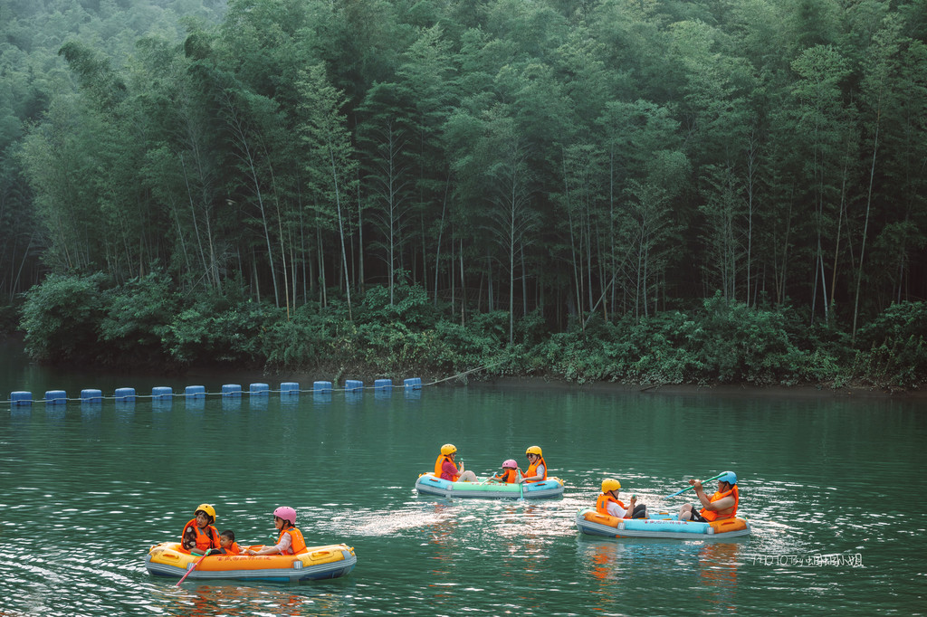 漂流的起点位于景区的“小九寨”湖泊处,背靠一片竹海迷宫,再网上走,还有茅山问道,可以在竹海间穿行,自然风光和环境都超一流。而这个“小九寨”湖泊,也是一个小型的蓄水池,为的,是让漂亮的时候有更大的水量,也让我们体验更多的快乐。