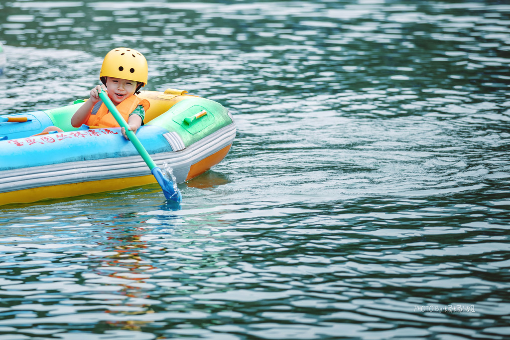 讲真,蝈蝈小姐的运动神经很大条,所以从来涉及到运动的项目,总是有多远躲多远,而这次因为自己带娃,只能硬着头皮扛起了一片天,开启人生第一次划船的经历~大概这就是所谓的为母则刚吧!皮筏艇上认真划船的我俩,这侧影,还挺美哒,哈哈哈~