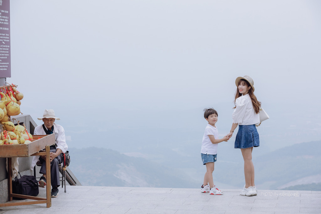 无奈大雾弥漫了视线,雾蒙蒙的一片看不清远处的风景,就在山顶Mark一张吧,虽然没有风景,但因为那售卖纪念品的老人无意间的入镜,却也成就了一张极好的人文片不是嘛?