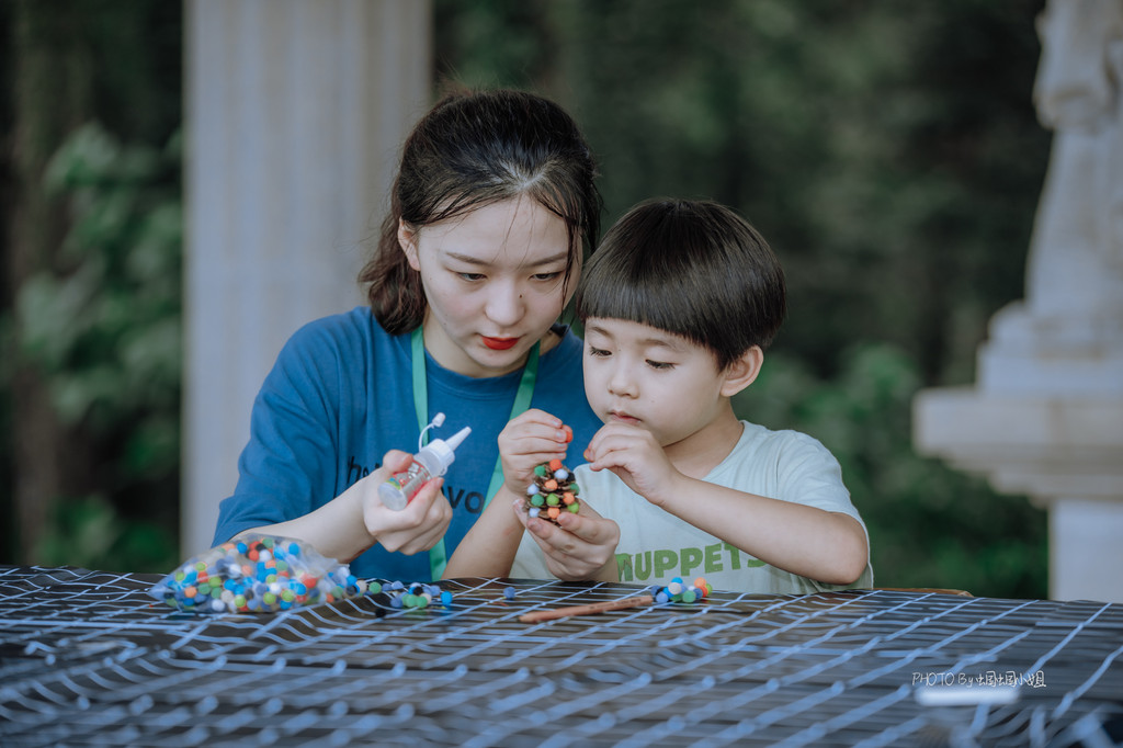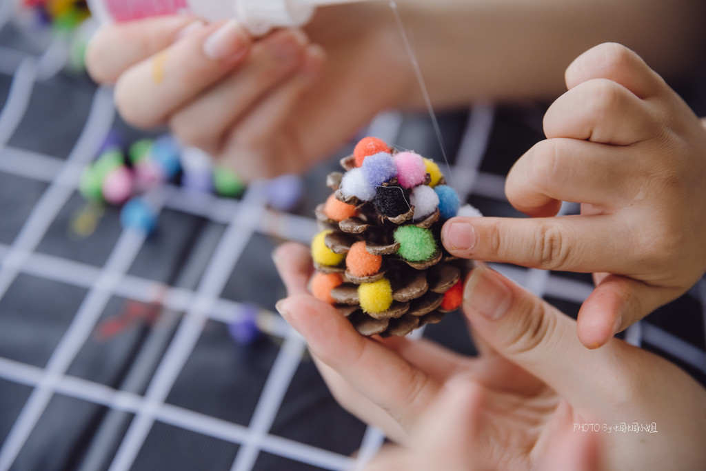 除此之外,还有刻画、装扮松塔,总之,那个被大雨困住脚步的下午,我们却在这欧洲广场的长廊上,在小朋友与G.O.的温暖互动中,收获温情一片。