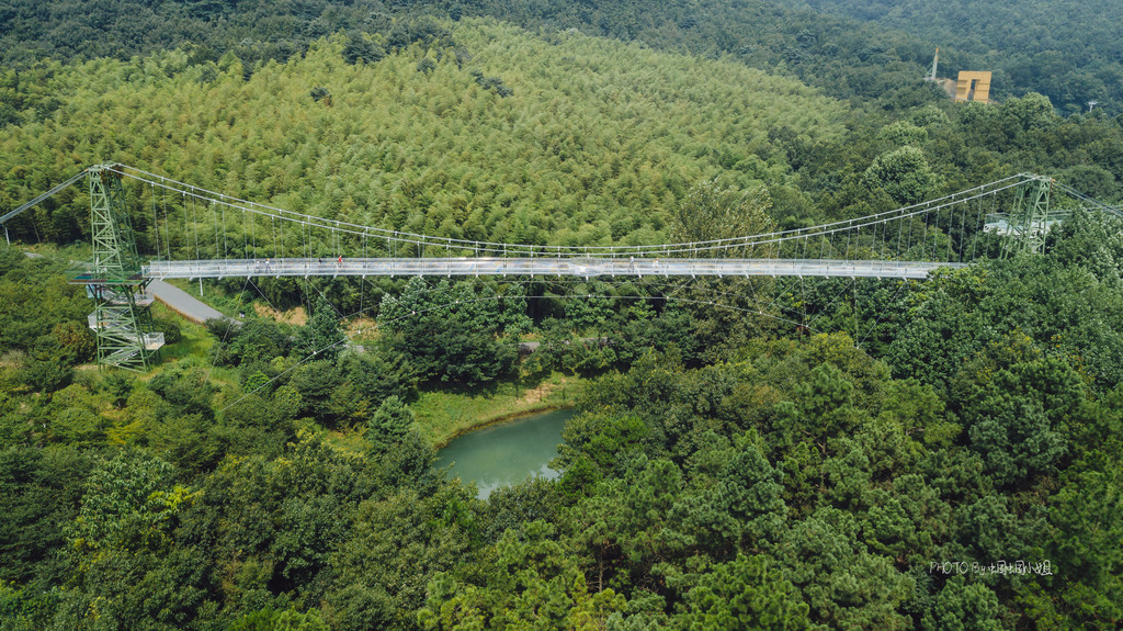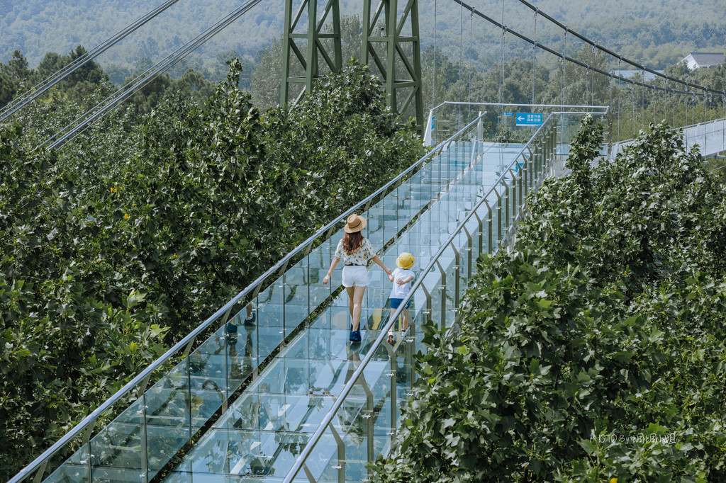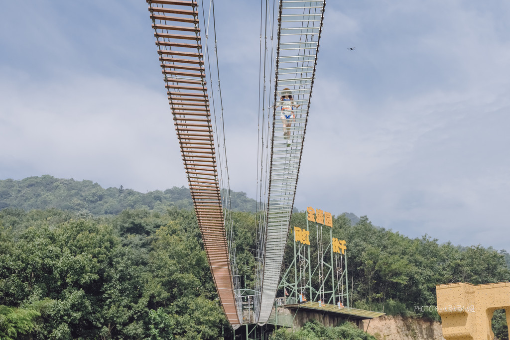悬空的钢索桥,全钢化玻璃铺底,为我们营造一种悬空在丛林间的即时感,即刺激,又拥有着无限的好风光。