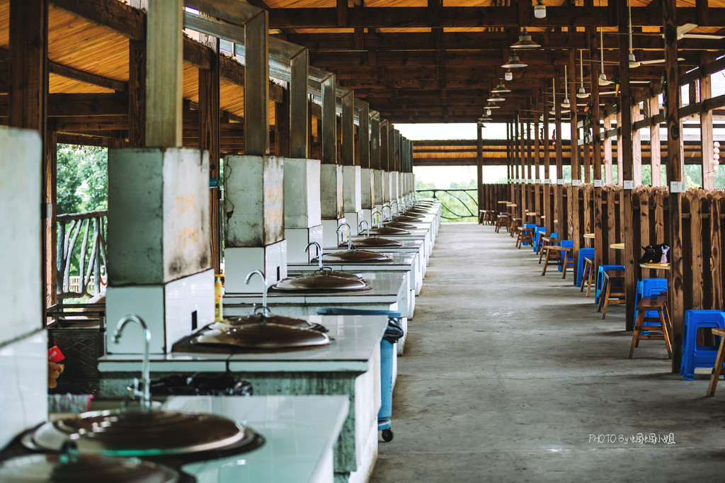 最推荐的是位于茶田间的农家厨房的“大灶台”,一口口农家土灶整齐划一的排列,很有气势,而这里,也是真实的让游客体验乡野农家的厨房,柴火、土灶,不能再有代入感了!