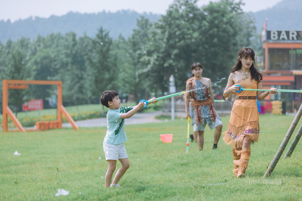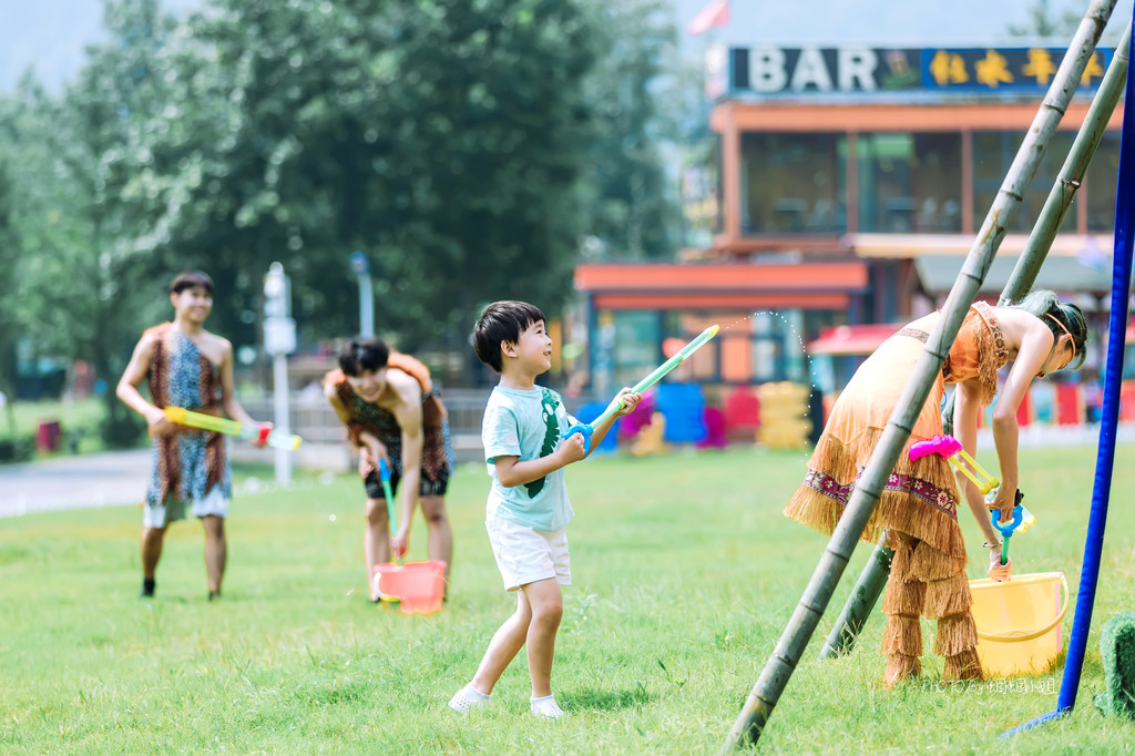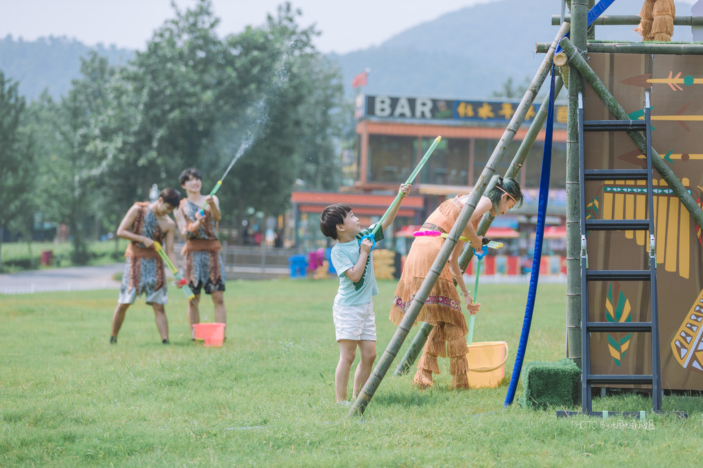 这个夏天来宝盛园,还有一个茅山野营生活节的活动,我们去的那天刚好赶上了开幕式,场面异常热闹,妆扮成原始时代的小哥哥小姐姐,还邀请游客一起,开启了一场热情的泡泡Party和激情水战。
