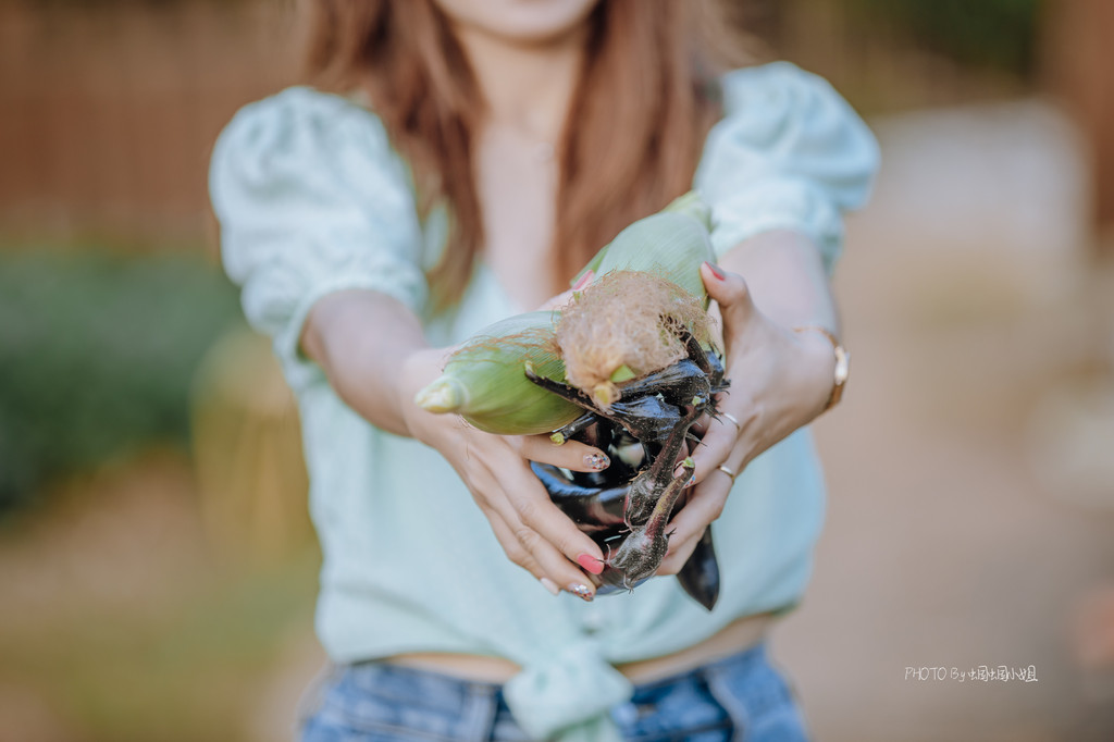 炫耀着采摘的成果,自给自足才快乐!