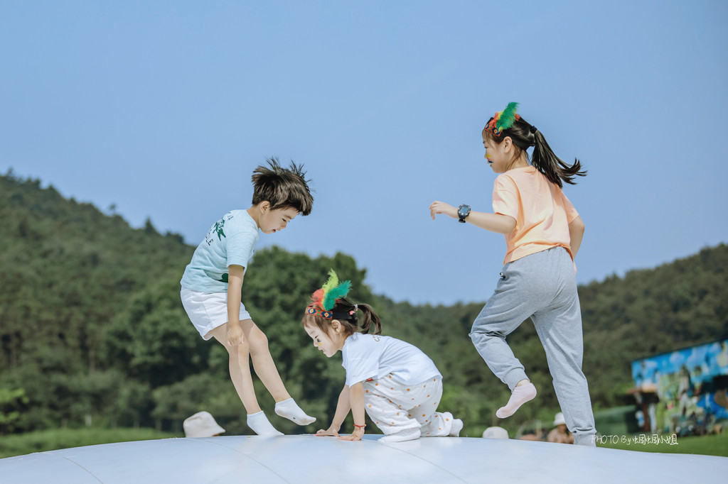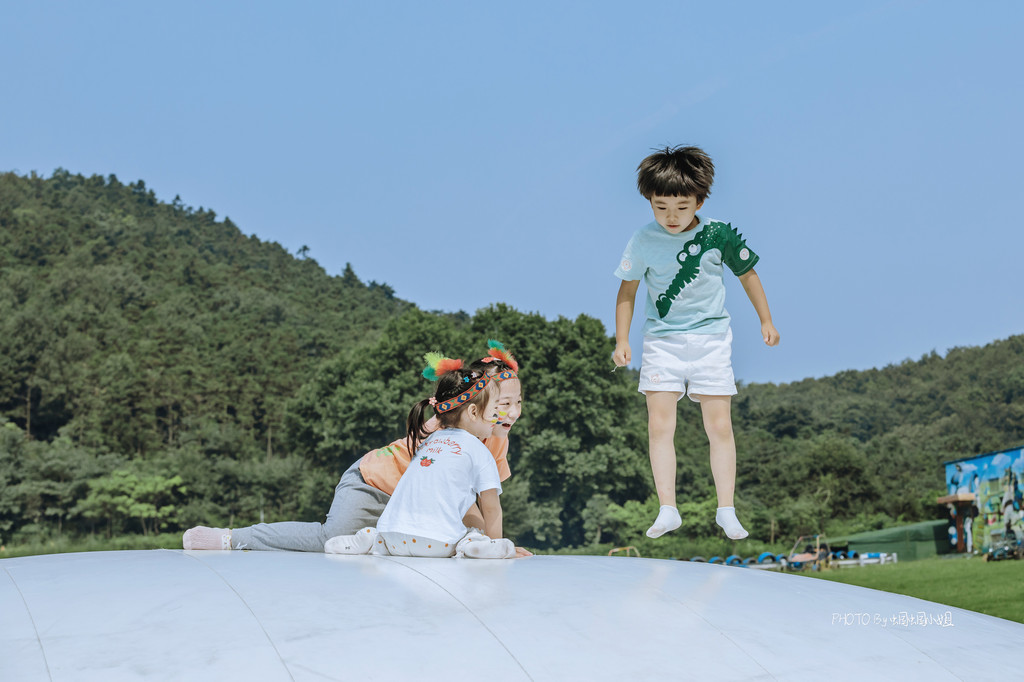 蹦蹦床有着妈妈那个年代的童年的记忆,如今看来,也一点也不过时,小朋友们不畏强劲的阳光,玩的不亦乐乎。