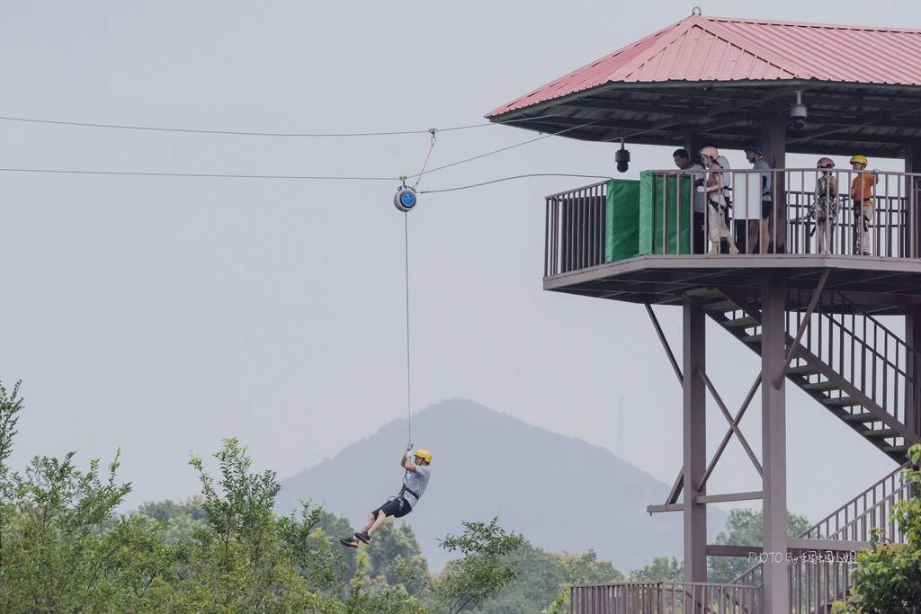 除了步步惊心、玻璃栈道,在另一边,还有高空吊索也是体验度非常高的项目,一阵阵的惊声尖叫,背后却是肾上腺素飙升带来的快乐。