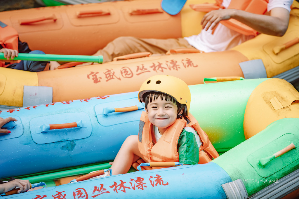 这并不是我们在宝盛园的第一站,却是我们最精彩的一站,所以这篇游记并没有按时间线索来回顾,而是按叮当小朋友的快乐值一一展现,夏日里,大概水才是小朋友们的快乐源泉吧~叮当小朋友生性爱水,却又惧怕漂流的各种俯冲动作,从期待,到隐隐的担忧表示要放弃,最后被鼓励着上了船,最后玩到舍不得下船,从漂到一半就开始跟我商量着,再玩一次吧,哈哈,这就是孩子吧!