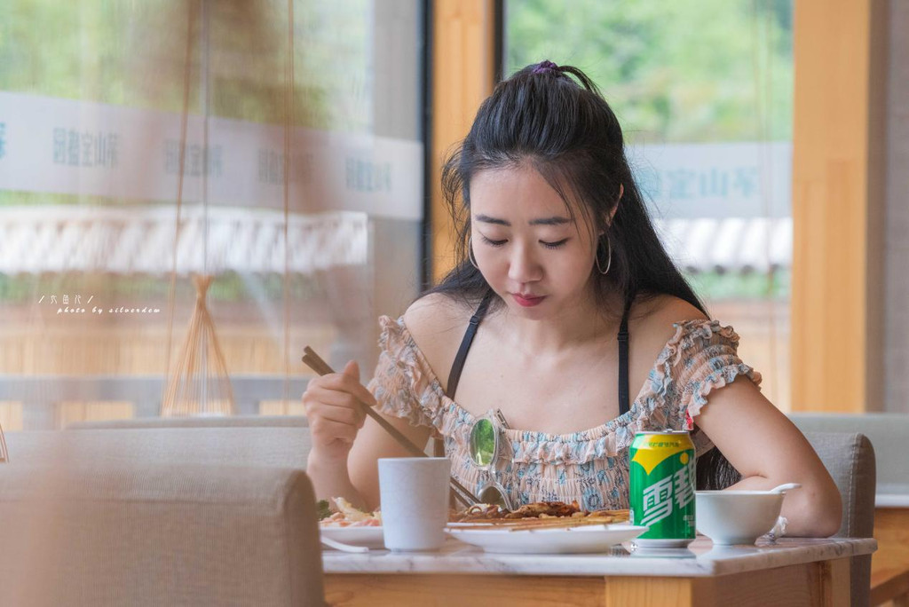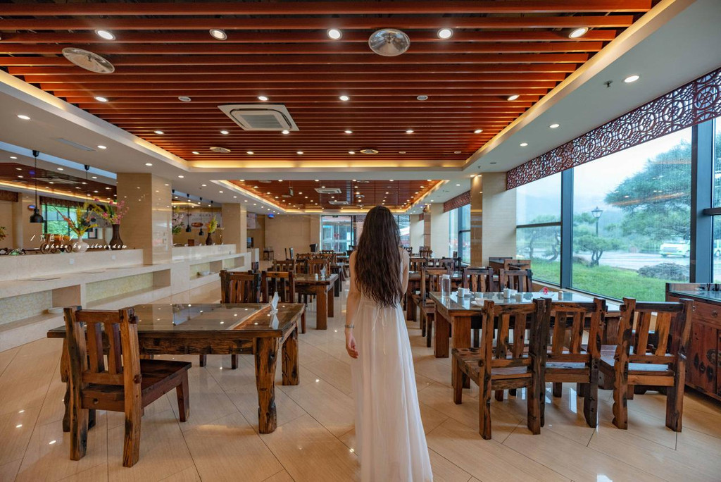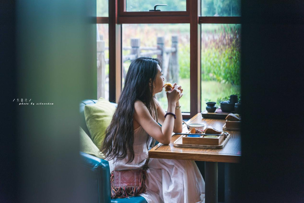 餐厅分为室内是室外,我们在室内吃了一会儿,便被窗外的风景吸引住了,餐厅外面便是我们昨天到过的地方,看着绿水千山,听着鸡鸣狗叫,一缕青烟镶嵌于山间。