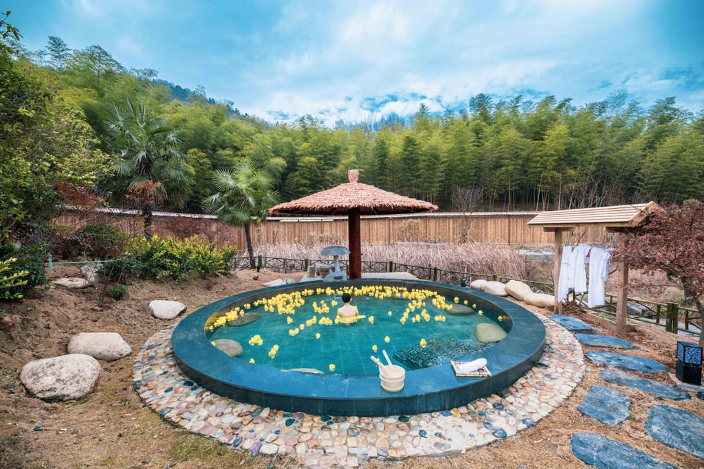 竹浸泡其中,涵天地之气、养自然之韵、解躯体之乏、回元气之本。这里到了秋冬便会在回归温泉,秋分日落时,沐身池中,远眺茅山山麓德祐观,天光云霞,山脉绵延,恍若世外桃源;大雪纷飞际,汤池雾气缭绕,您可凝神静气,吸收自然气息,也不乏有“富士山”山野温泉的既视感。小野温汤——拥茅山之境,享小野之“道”,授温汤之养