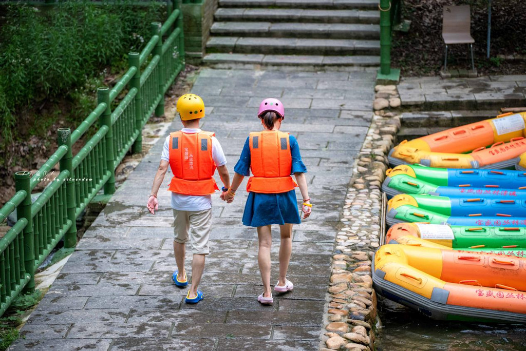 我们到达起点后,看着一个个全副武装的人们,准备开启我们期待已久的漂流大战,想想觉得兴奋,不过如果不想等太久排队,建议错开高峰期,早一些到达。