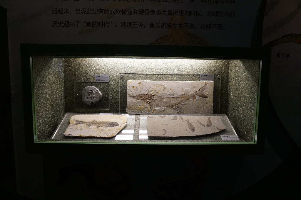 橱柜中的一组远古时代的化石标本向我们展示古代生物演化的历史进程。
