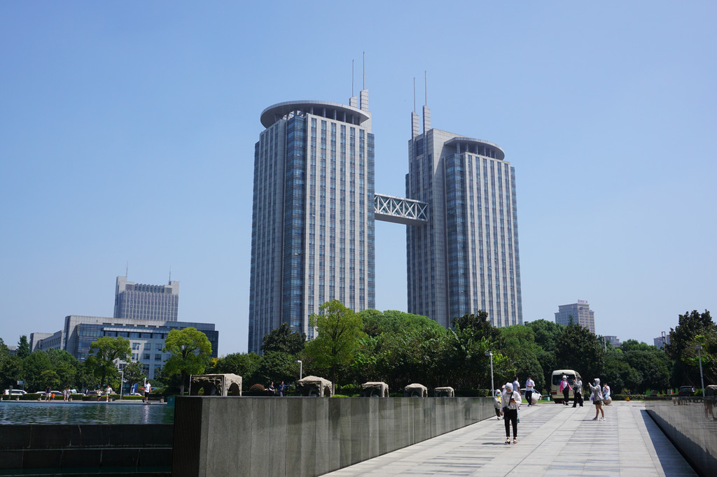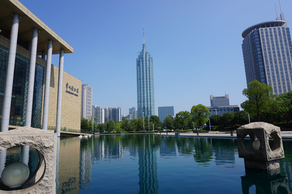 博物馆得天独厚的位置,周边都是常州标志性的建筑。站在广场上环顾一周,昨天我特意经过的会展中心。
