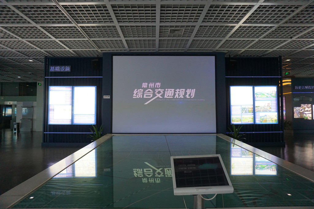 运用激光沙盘和视频演示 形象地展示了常州市大交通基础设施的规划。