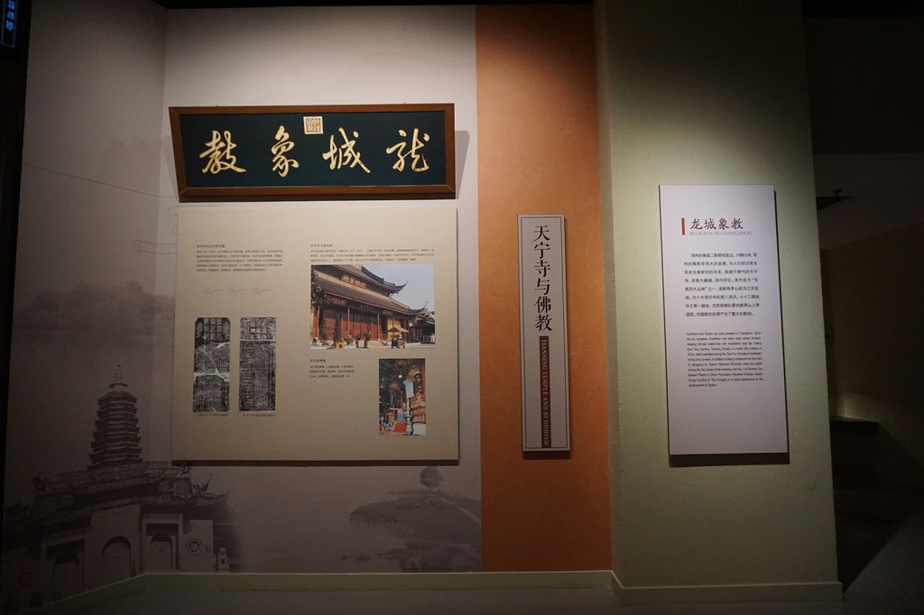 最后一个版块“儒风蔚然”介绍的是明清时期再度辉煌后儒风蔚然的常州。天宁寺,是我国佛教禅宗一派中较有代表性的寺院,始建于唐代贞观、永徽年间,从明代起就有“东南第一丛林”的美誉。它是常州文化古城的历史见证。乾隆皇帝六下江南,曾三次到天宁寺礼佛,其中有一次还给天宁寺题匾“龙城象教”。