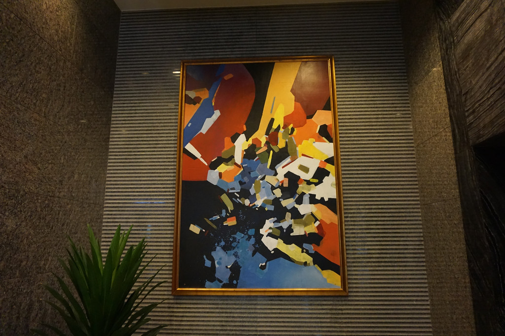 庄重的石壁赋和现代化的抽象派绘画在一个空间中相得益彰。