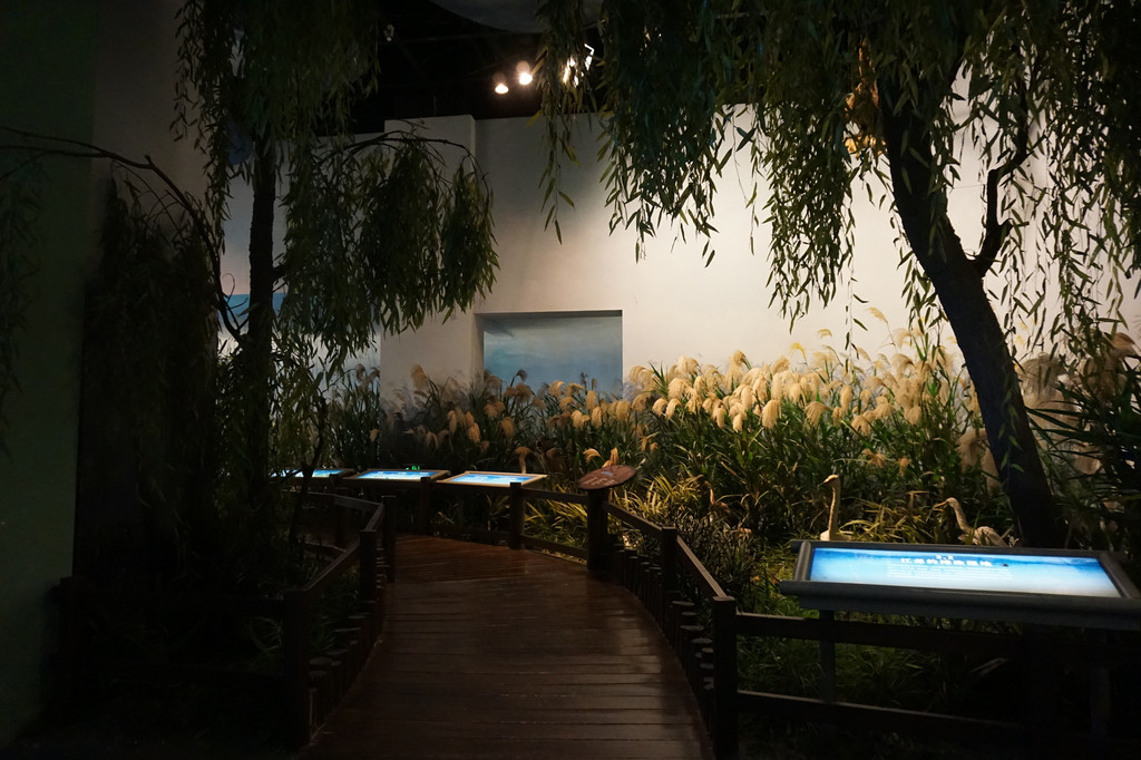 湿地与森林、海洋并称为地球三大生态系统,有“天然物种库”和“地球之肾”之称。江苏省湿地面积为399.8万公顷,约占省国土面积的39%,其中射阳、大丰两大湿地为国家级自然保护区。这里以这两大湿地为模型制作而成的景观带我们直接感受到湿地芦苇深深,流水湍湍,水草繁茂的场景。