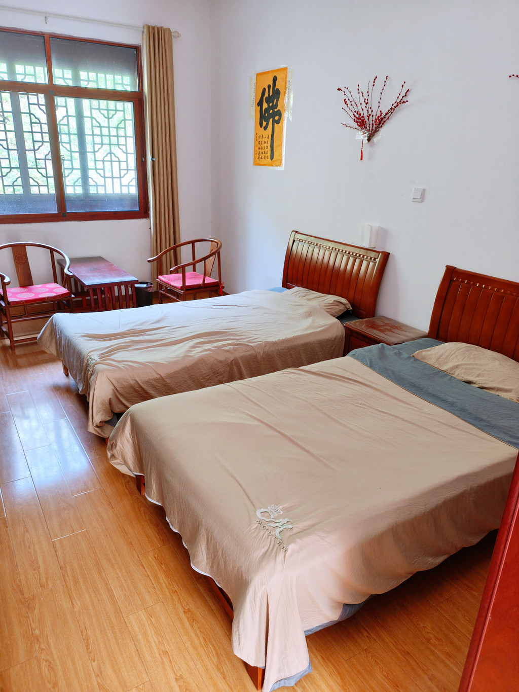 我住在寺院的寮房,类似标间,有独立卫生间,可洗澡洗衣,设施虽简朴但干净整洁。因寺院人少,很多时候我独自住一间,格外清净。清晨在鸟鸣中醒来,夜晚伴着虫声入眠,远离喧嚣,睡眠也踏实许多。