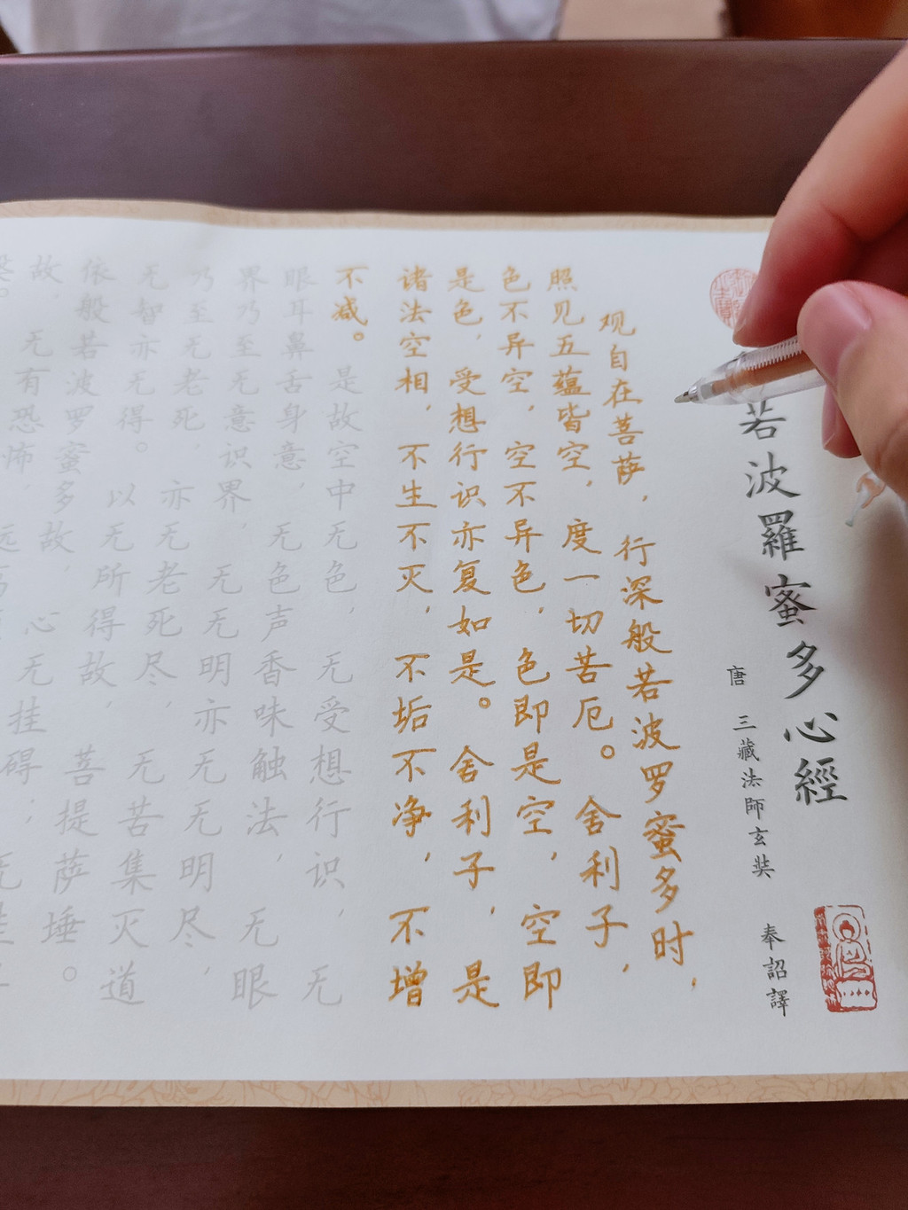 在抄写《心经》时,修行者全身心地投入到经文之中,专注于每一个字、每一句话所蕴含的深刻义理,在这个过程中,内心的贪嗔痴等烦恼会逐渐被净化,过往所造下的恶业也会随之消减。