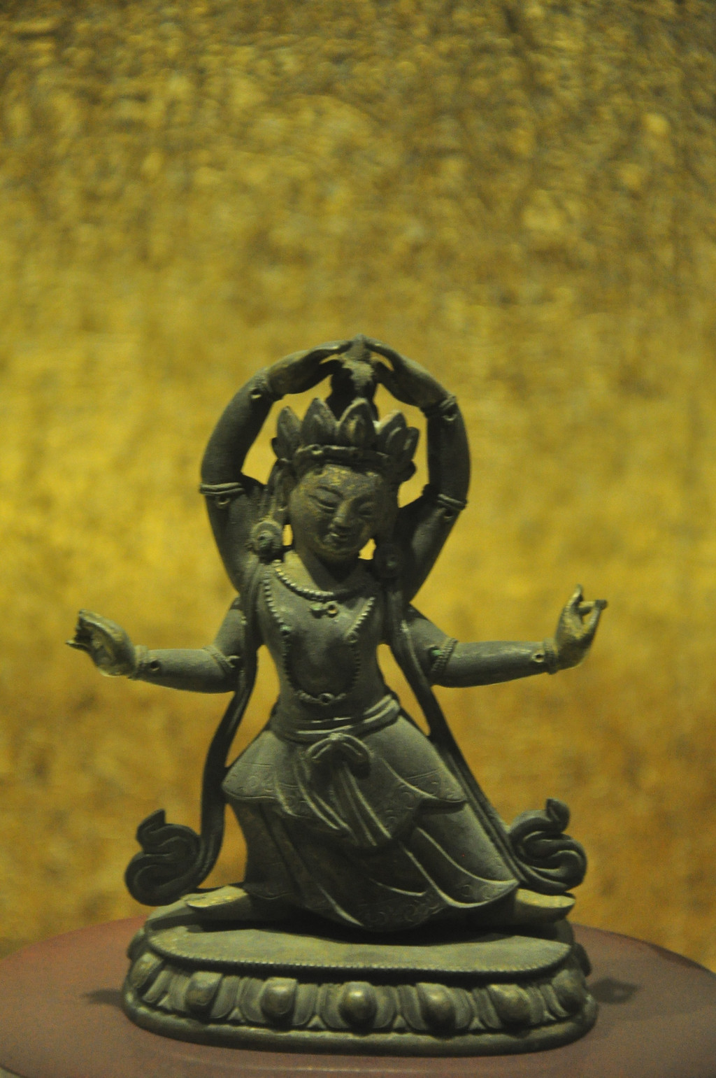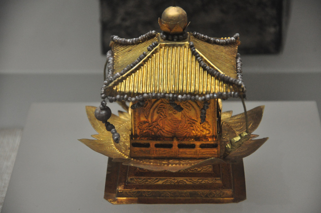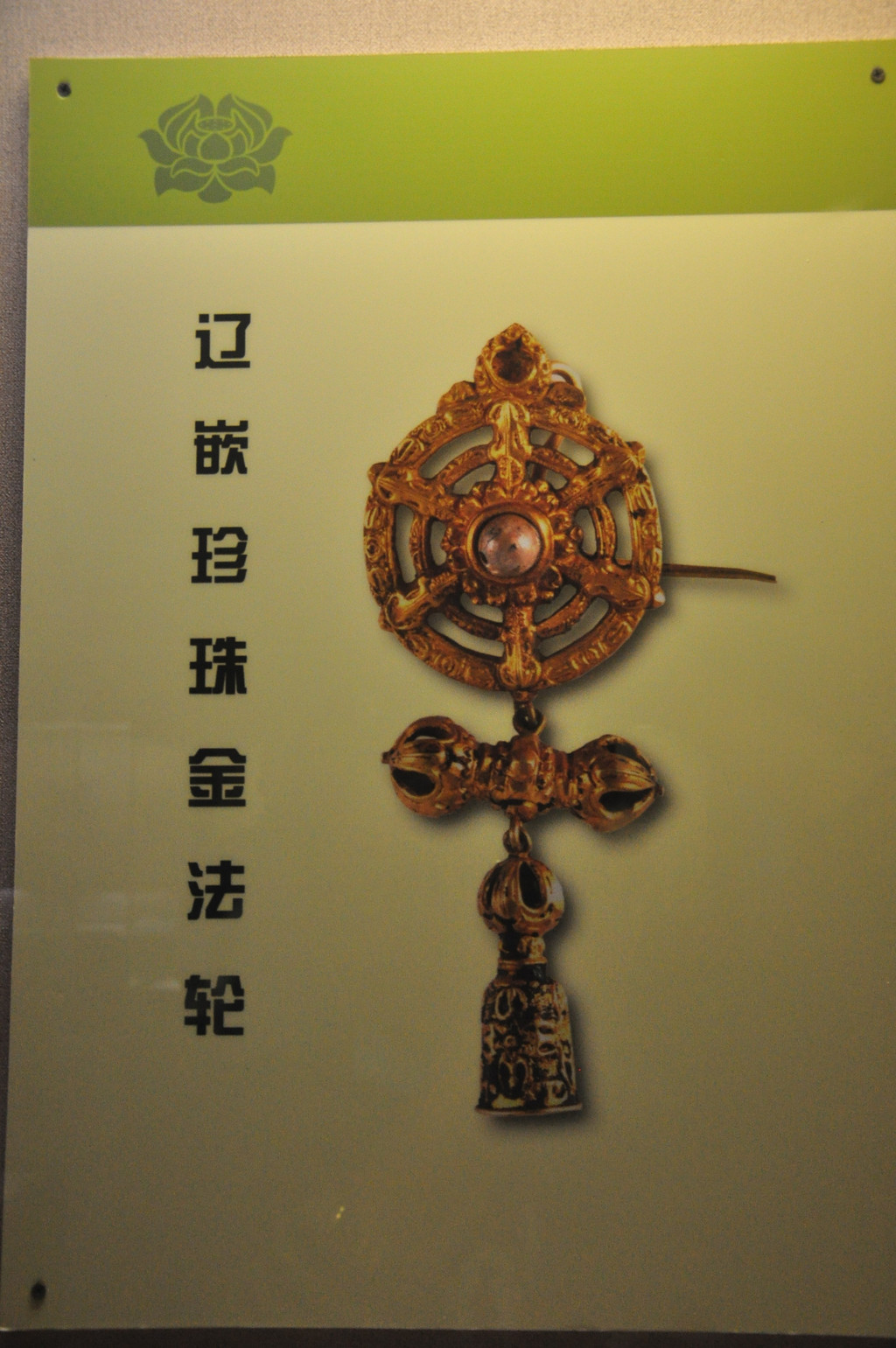 参观的展品主要是北塔内发现的文物,地下一层陈列着博物馆镇馆之宝舍利子,舍利子在一个金色宝匣内陈放,隔着一层透明的玻璃,肉眼很难辨识。工作人员告诉我们当时发现发掘的经过,是非常偶然的相遇,却成就一次世纪的大揭秘。原来我们毫无北塔博物馆的丝毫信息,没想到在此有一个意外的惊喜,意外的收获,感觉到此一游,非常值得。