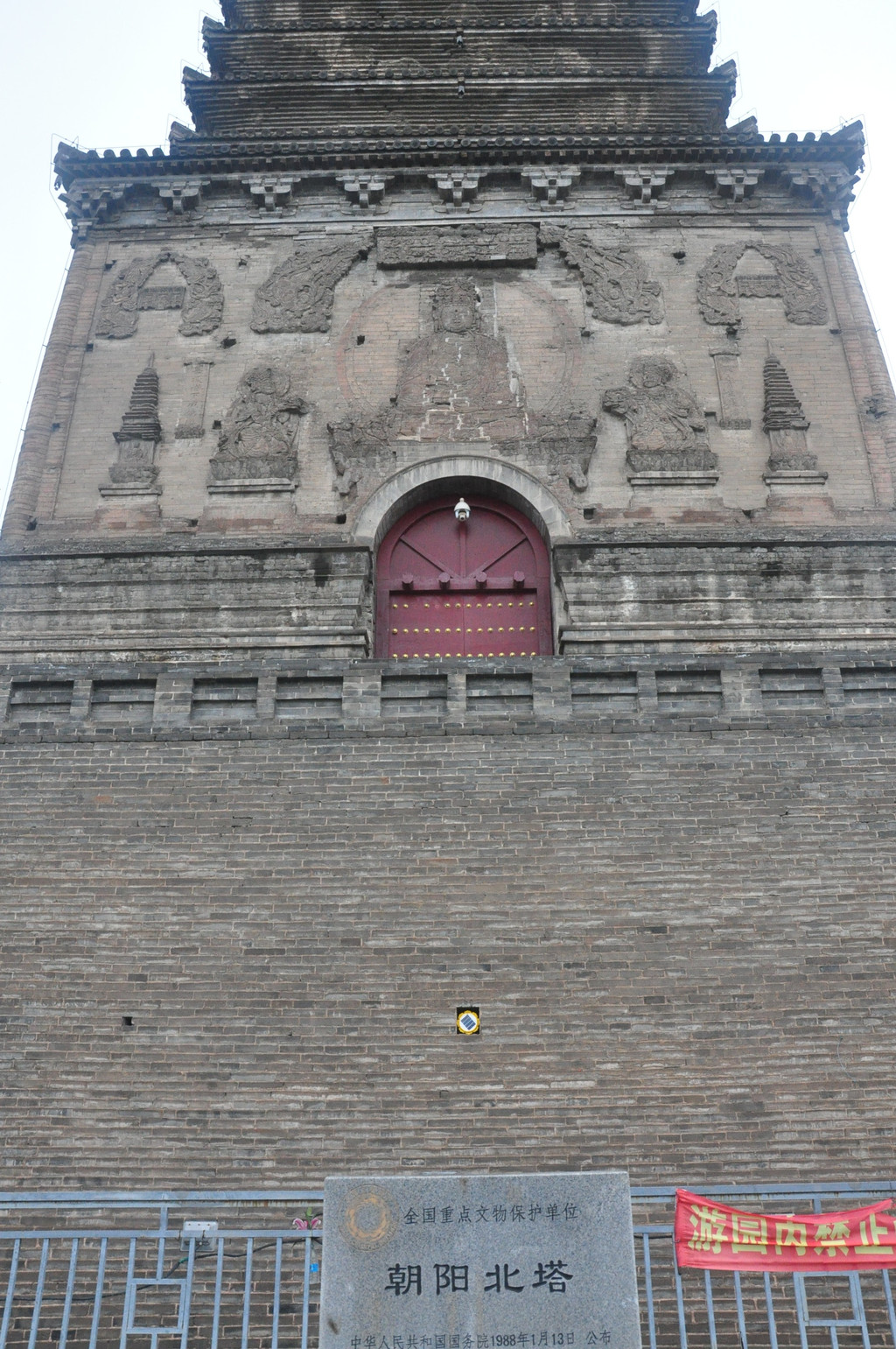 趁这个时间,我们先看看博物馆门前的北塔。朝阳北塔,位于辽宁省朝阳双塔街北端。朝阳北塔始建于北魏孝文帝太和年间(公元485年前后),是北魏文成明皇后冯氏在三燕龙城宫殿旧址上,为其祖父北燕王冯弘祈寿冥福和弘扬佛法而修建的"思燕佛图"(十六国的前燕、后燕和北燕均曾都于龙城,因此朝阳有"三燕故都"之称)。"思燕佛图"为木构楼阁式塔,后毁于火灾。