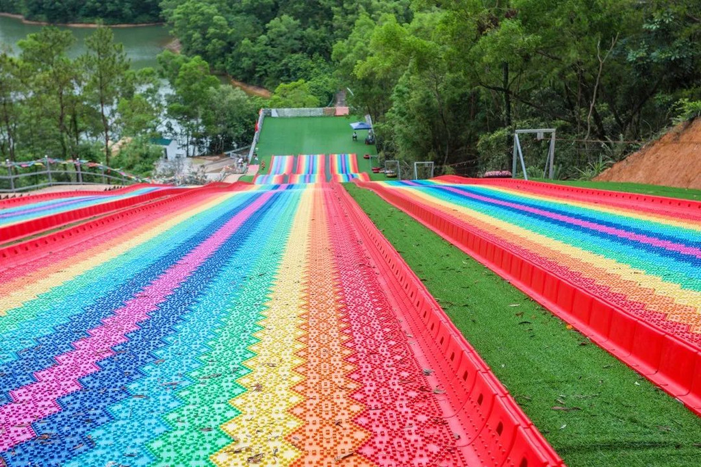 这里长长的彩虹滑梯也非常有趣,在滑梯的顶部坐上救生圈滑下,非常刺激。但是因为用了救生圈作为道具,所以虽说刺激,但也是非常安全。可以尽情体验速度带来的趣味和刺激感。