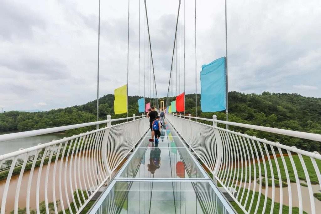 横跨湖面的玻璃桥,脚下就是清澈的湖水,走在桥上,颇为刺激,但也是观景极为不错的去处。