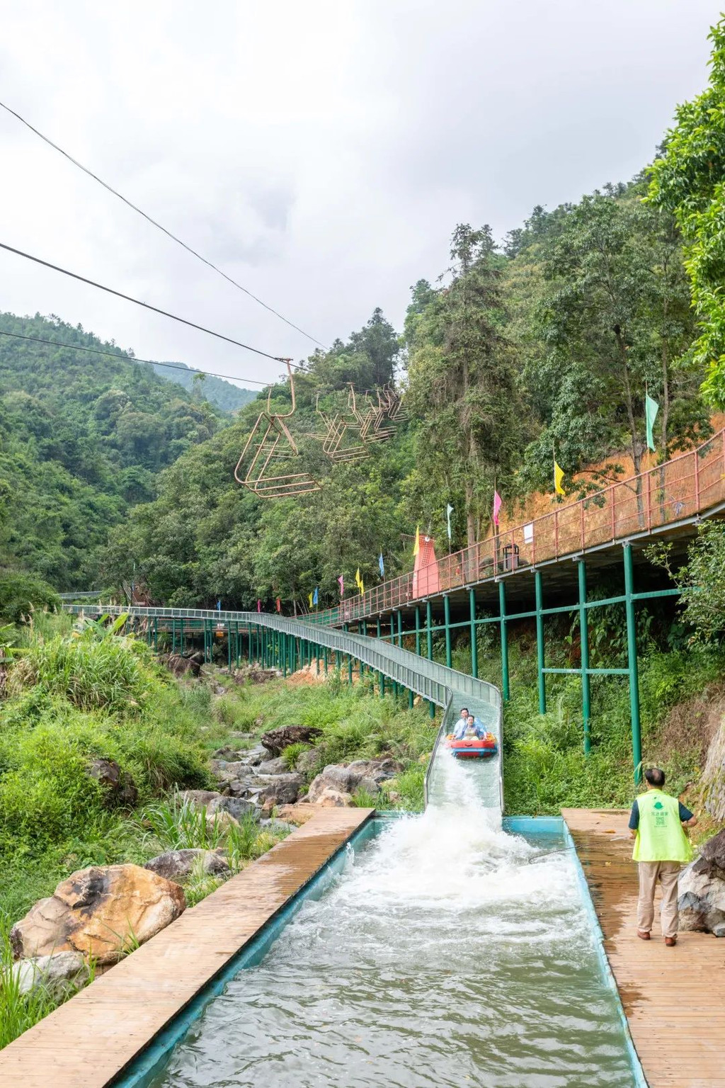 这里还有玻璃栈道漂流,坐上漂流筏,从山顶一路向下,在冰凉的泉水中看着两旁的青山绿树,这样的夏日,冰凉而美好。