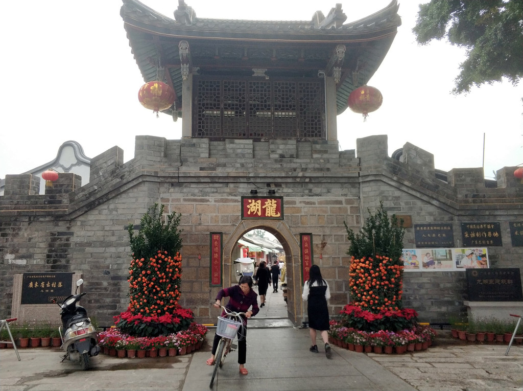 吃完粽子还有点时间,我打算再到龙湖寨去看看。寨外的护堤公路上,一大群穿着白色校服的中学生骑着自行车路过,看样子是周末下午放学,个个面露愉快的神色。