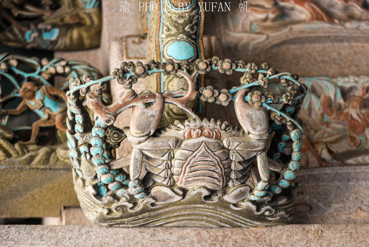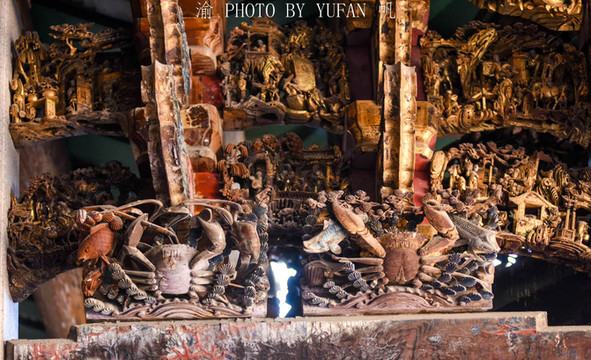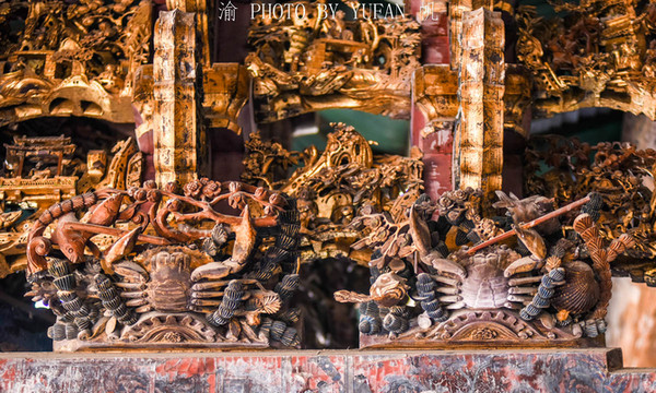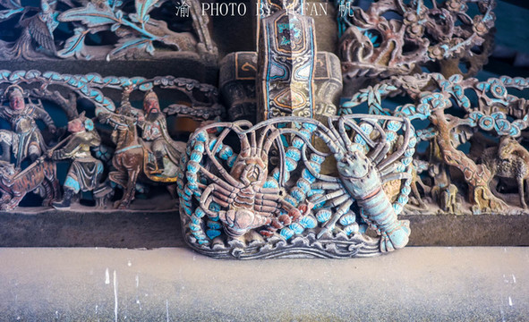 我们在现场看到,从熙公祠的每一处石雕、木雕都精美绝伦,很多都不是简单“凿”出来的,而是用刀一点一点“剔”出来的。而且为了让木雕、石雕效果更加富丽堂皇,陈旭年还请人将这些石雕、木雕全部彩绘,使其这些飞禽走兽、花鸟鱼早、人物故事更加栩栩如生。