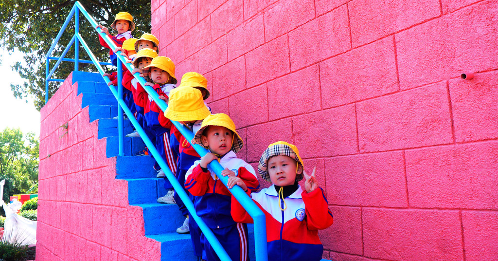 4位美女借台阶摆姿打卡拍照,这是一种中国现象,也是世界现象。