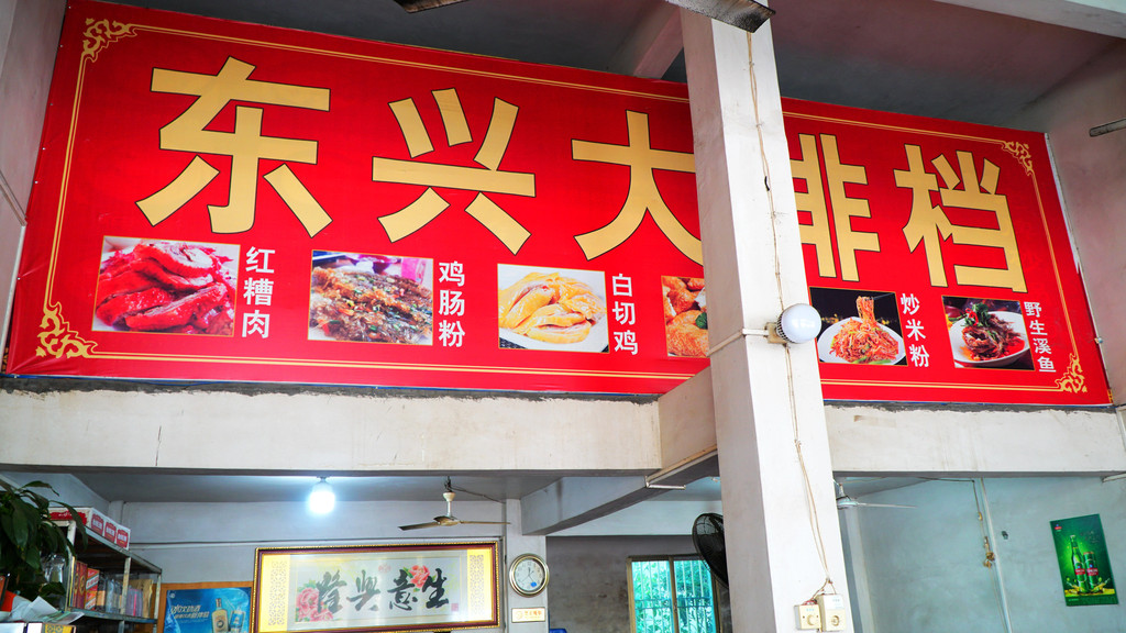 出了单枞茶博物馆,已是正午时分,我们在凤凰镇上物色了几家餐馆,看到东兴大排档里有几桌食客,都是衣着朴素的当地人,就它了!