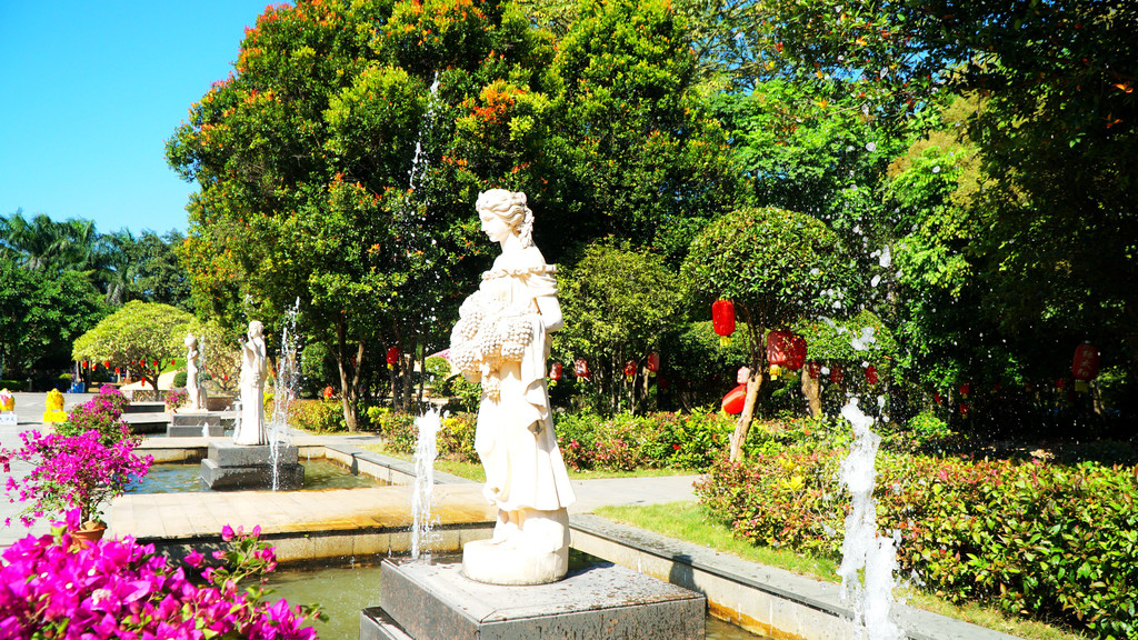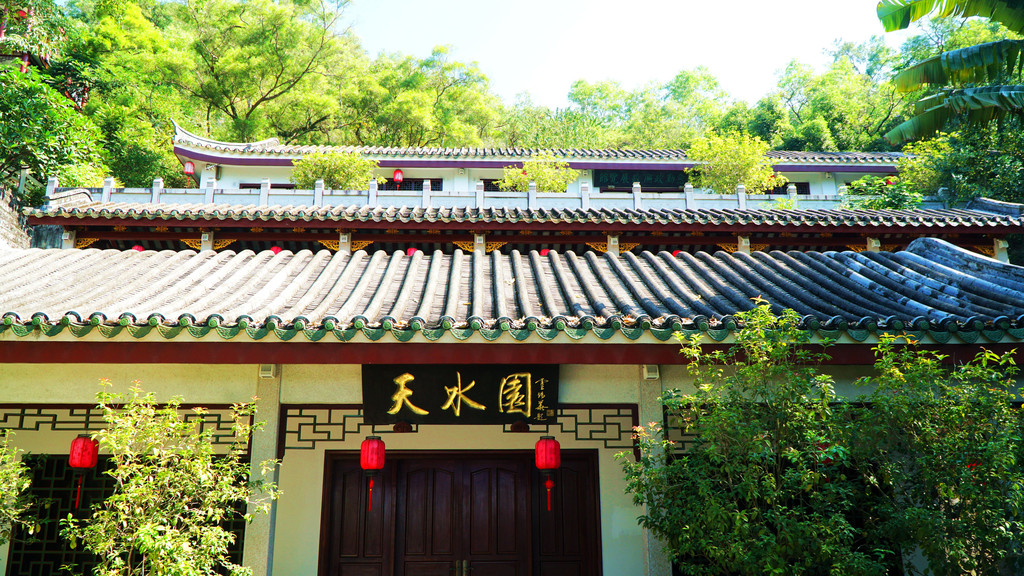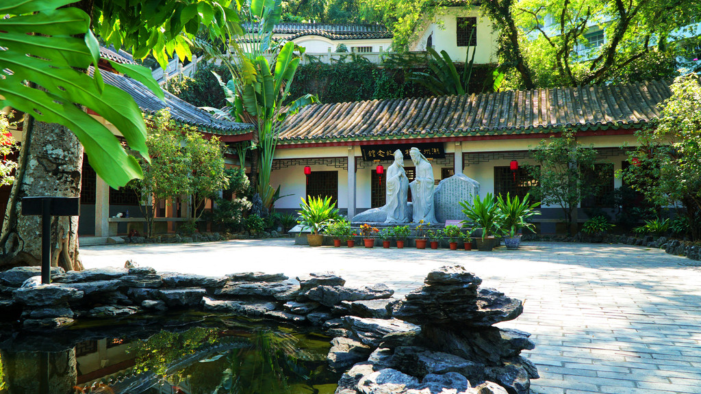 在陡峭的山坡上,难得开辟出了“天水园”这样的园子,园子中央塑着韩愈和他的好基友。