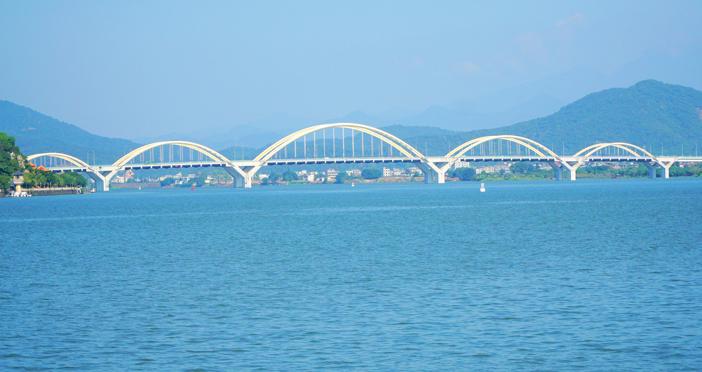 江畔的远山连绵起伏,新桥以另一种姿势展示于世。