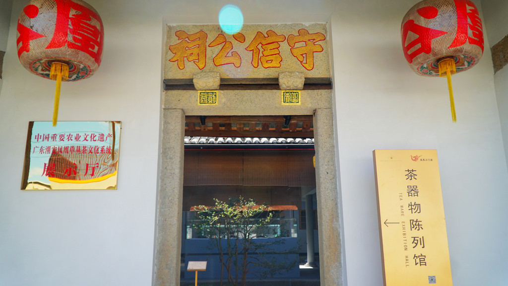 千年单丛列全国六大茶类之一,它是广东的国宝,而潮州单丛茶博物馆就坐落在凤凰镇东兴村,与镇子只隔了一座桥,我们将车停在桥边的停车场,走到博物馆门口,发现它是一个大院落,由若干栋古建筑修缮成的。