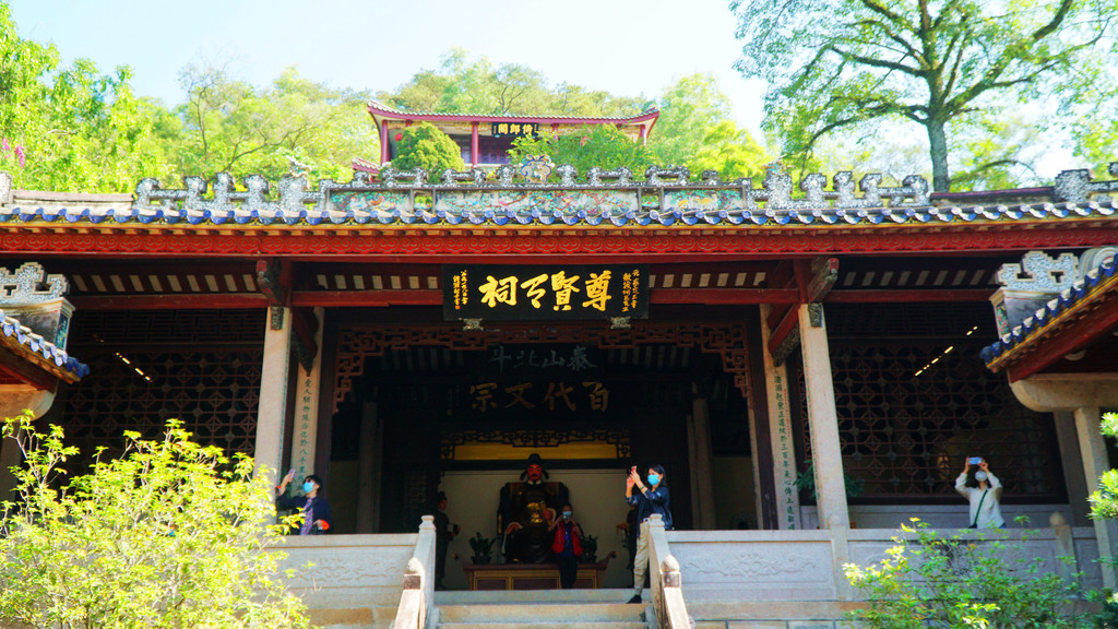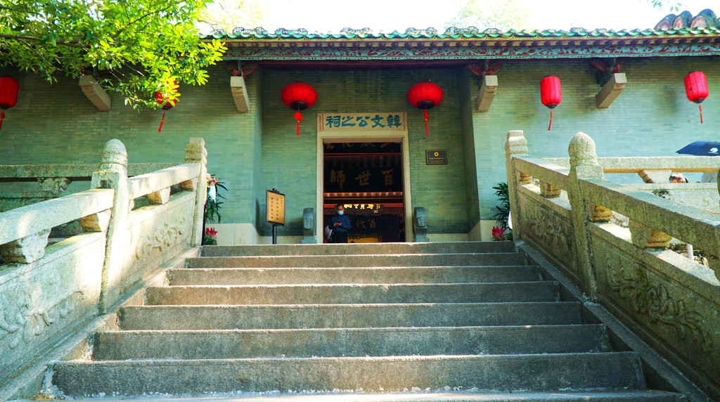 潮州韩文公祠是贴在山坡上的,前临韩江,藏于青山之间,清静典雅。