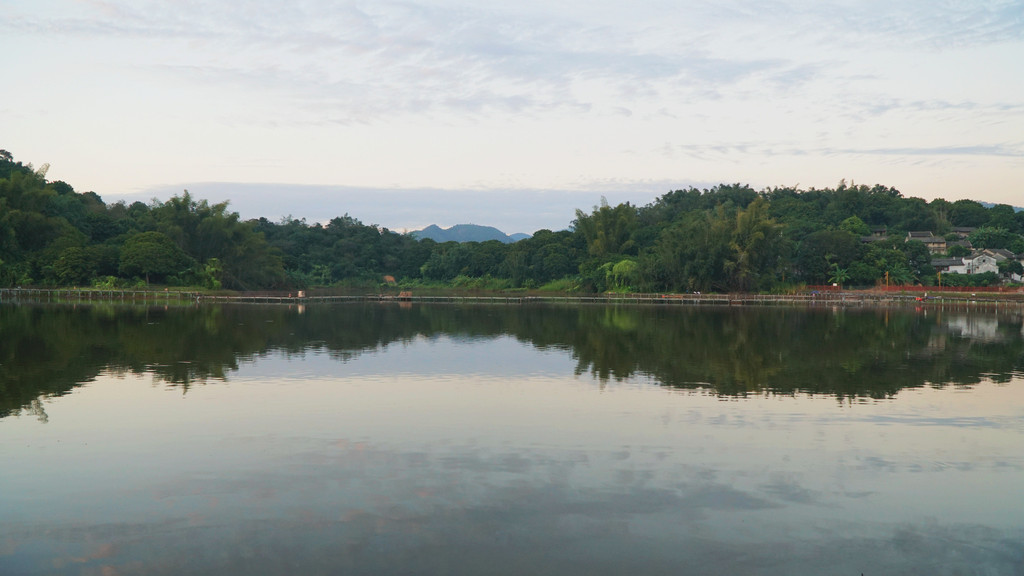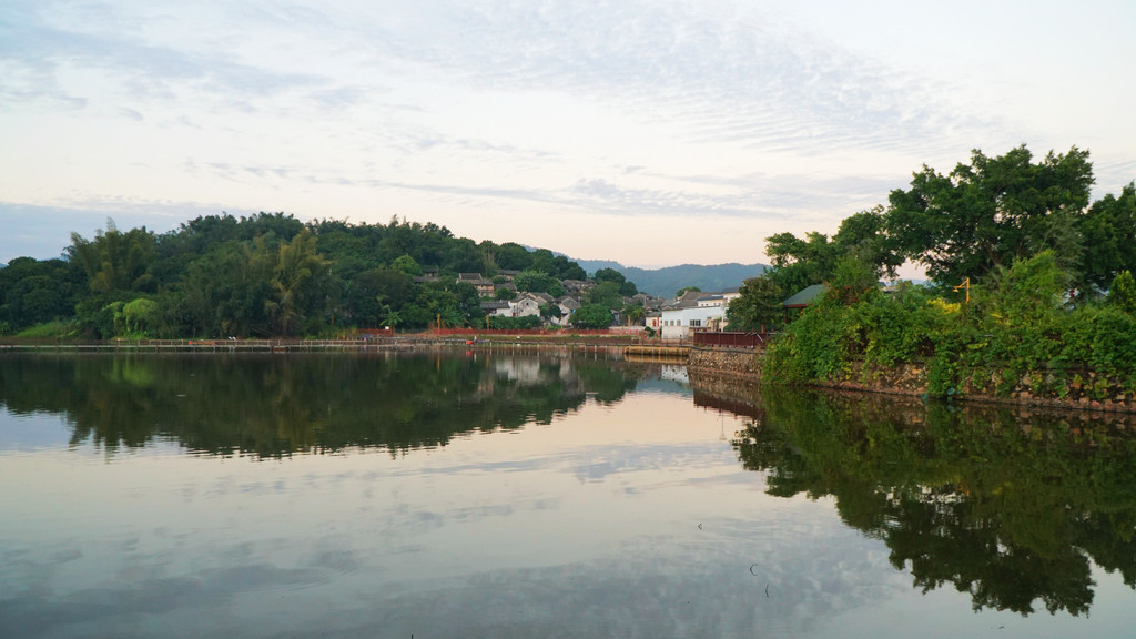 狮峰村地处凤凰山脉南部,归属潮安区归湖镇,凤凰山流下来的溪水流经狮峰村,从归湖汇入韩江。尚未进入村庄,村前的白鹭湖美得冒泡,成功地吸引了我,赶紧靠边停车,顾不上违停,先驻足欣赏一番。