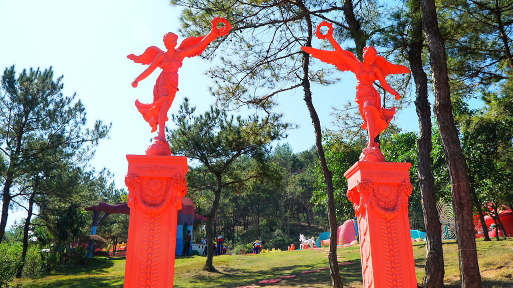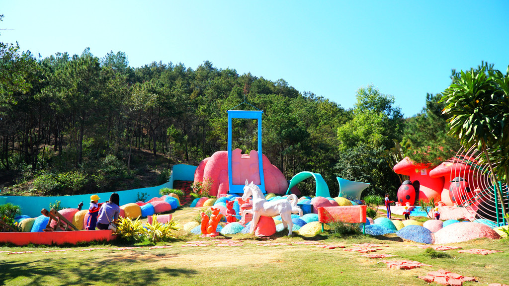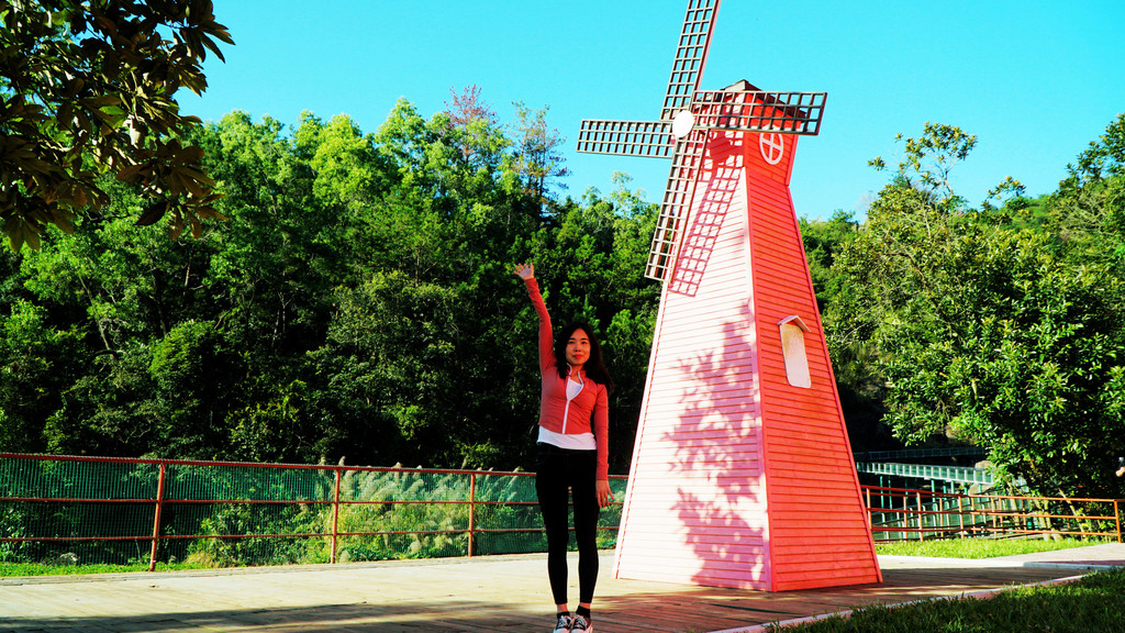进入大门没几步,就有个粉色风车,还有白色的野营帐篷,来的人都会于此打卡,美女们更不例外。