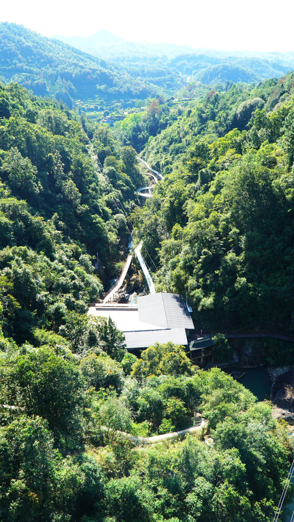 如果随身带了忌水的物件,还可以选择高空旱滑道下山,富龙我穿上景区配的裤子,戴上配送的手套,嗞溜嗞溜,就轻松滑到了山脚。