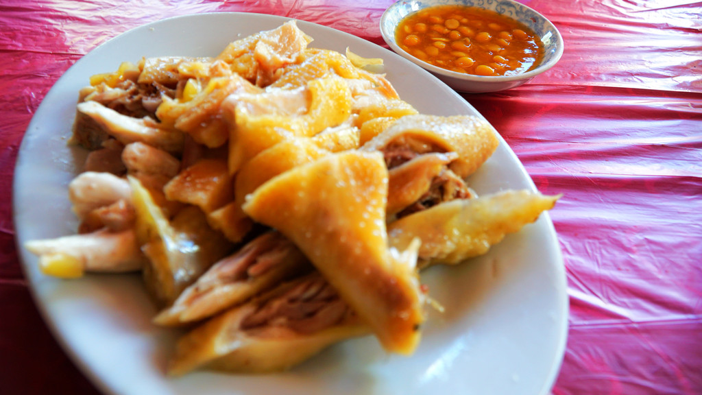 点了白切鸡、浮豆腐、鸡肠粉,还有一个野菜。便宜,但口味并不出色。