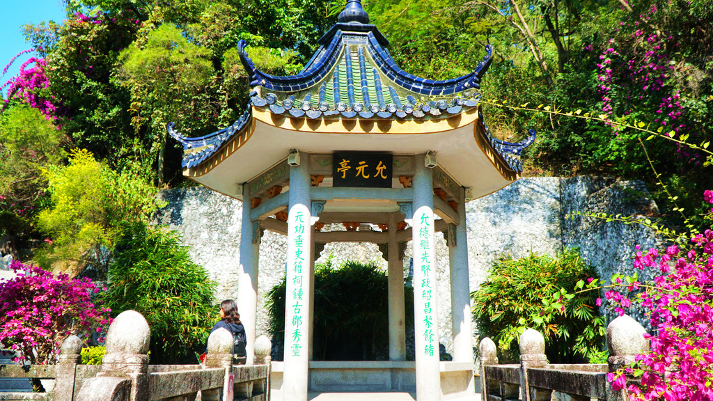 允元亭的2根柱子上刻着一副对联,那是歌颂一个人的。