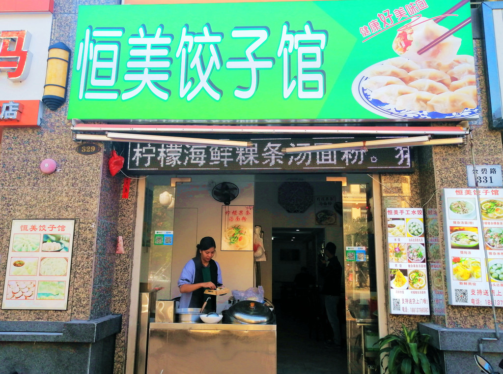 14日早餐在恒美饺子馆吃,头天早餐吃的是牛肉面,今天换个口味,点了鱼丸。老板娘三十上下,身兼厨师、服务员数职。