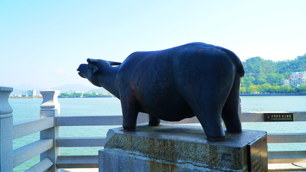 半卧在第5个桥墩上的这头牛不是来耕田的,它是镇水患的神器。韩江水患频繁,大桥屡屡受损,人们寄希望于鉎牛能镇住水患。