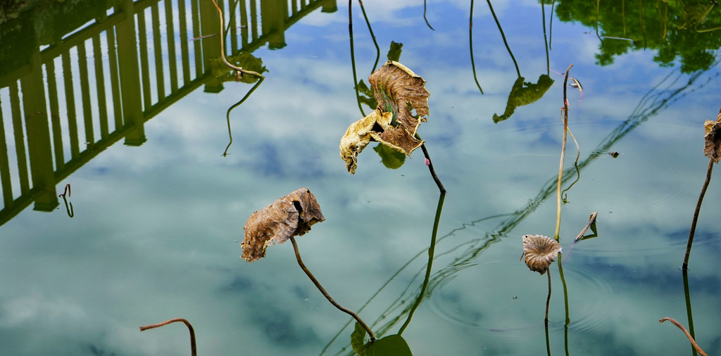 过千亩的大型湖泊,有围栏,有木栈桥,有荷花,还有高低错落有序的民宅,在合适的季节里,还有白鹭掠水的美景.......