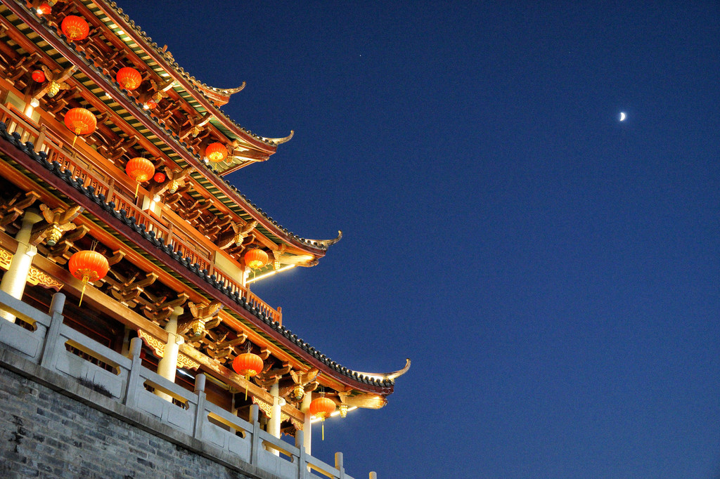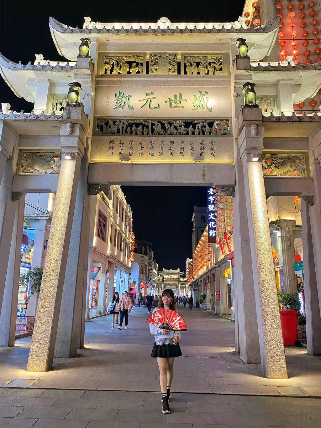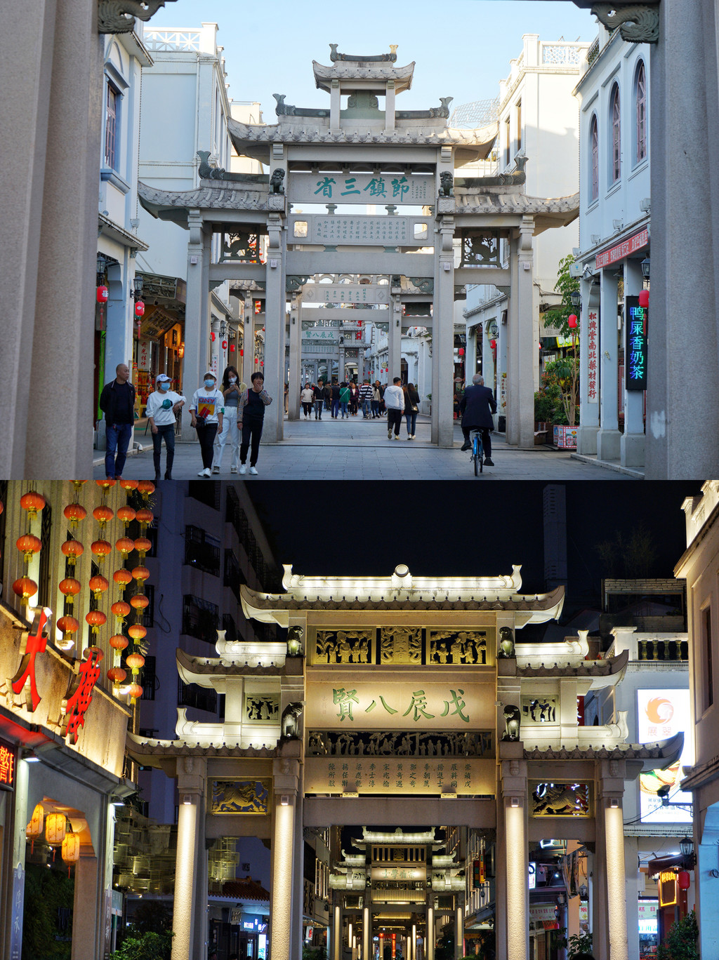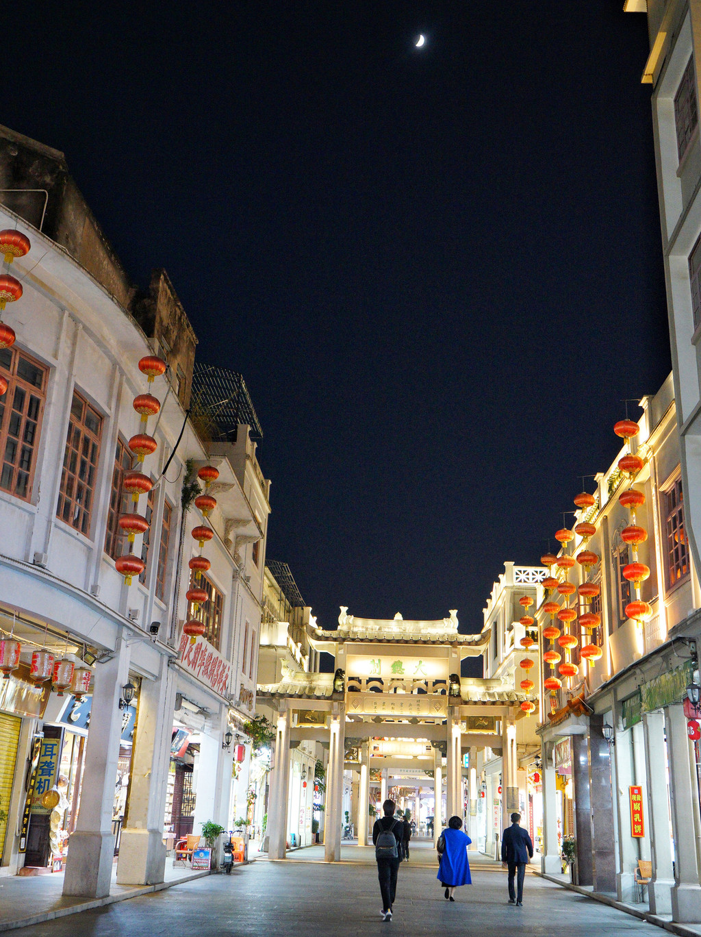 白日游人如织,如果穿着汉服走在里面,更有一种穿越回古代的恍惚感。夜晚人流减少,牌坊街华灯满上,夜色绚烂,倒别有一番静谧古城的魅力。