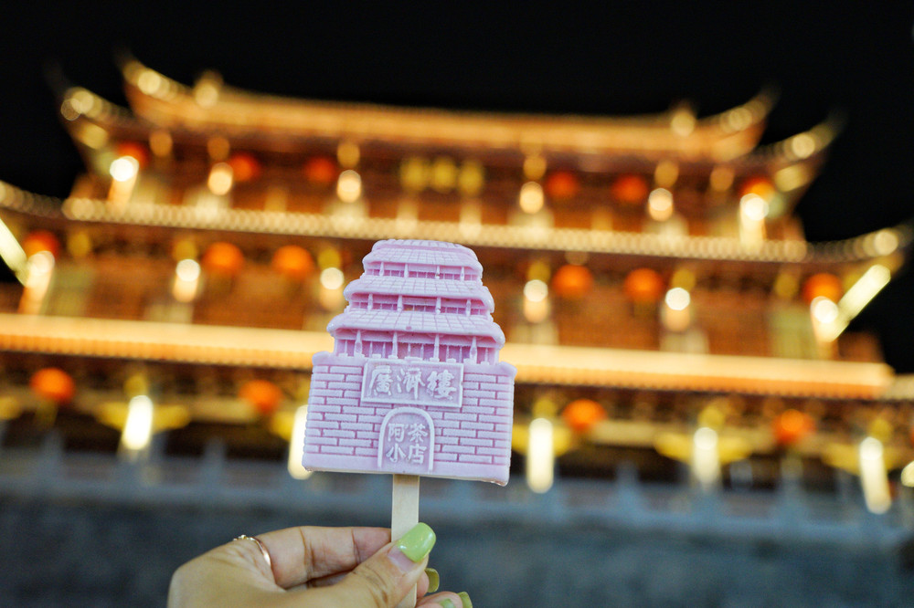 旁边的牌坊街有几家小店,有卖广济桥创意文创周边产品,如广济桥雪糕(阿茶小店),广济桥华夫饼等,价格是10元左右,可以买一个拿去拍照,好吃又好看。