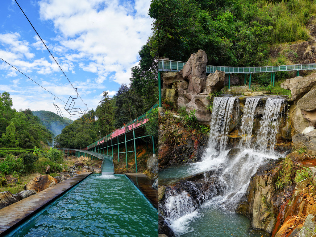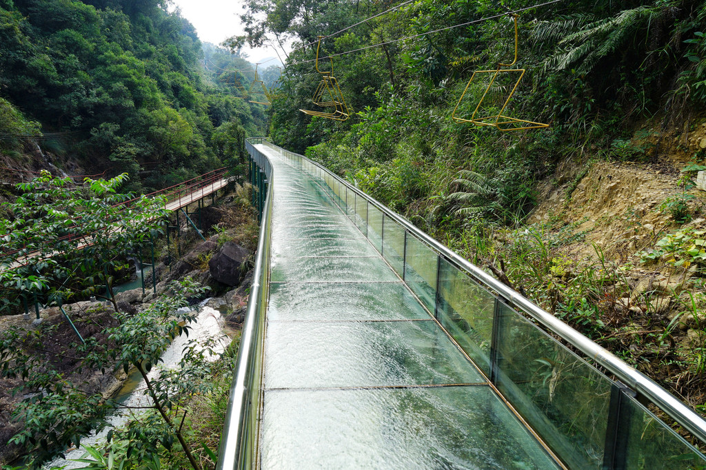 来这里,一定要体验空中漂流。全透明的漂流栈道悬空蜿蜒山中,顺着水流从山林中穿行而过,真的是美爆了。